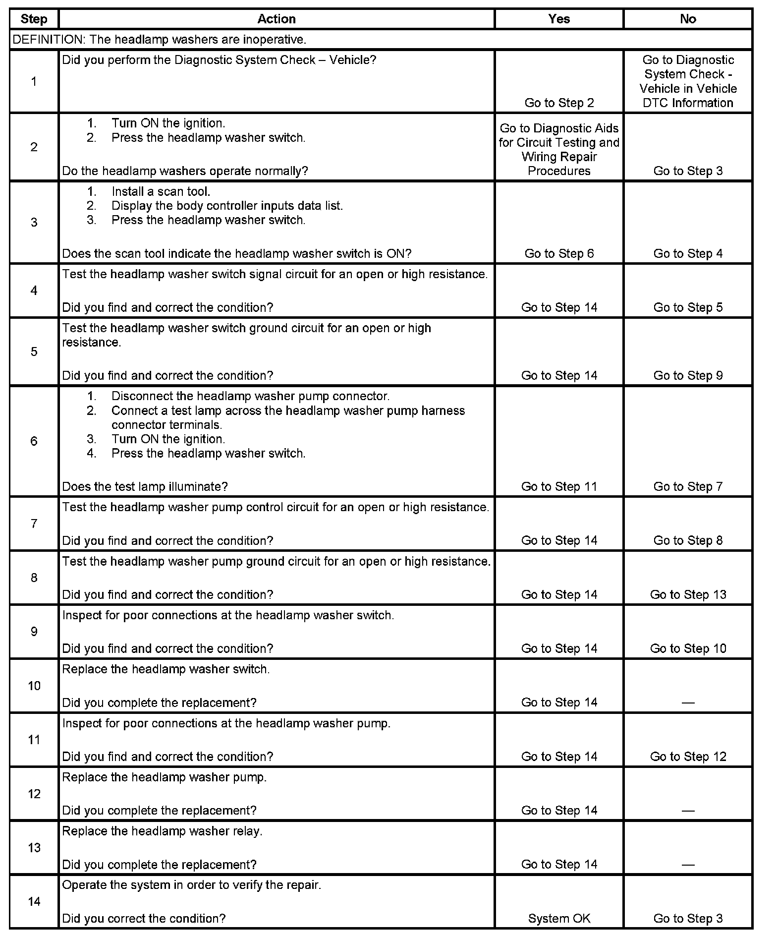 Washers Inoperative - Headlamp
