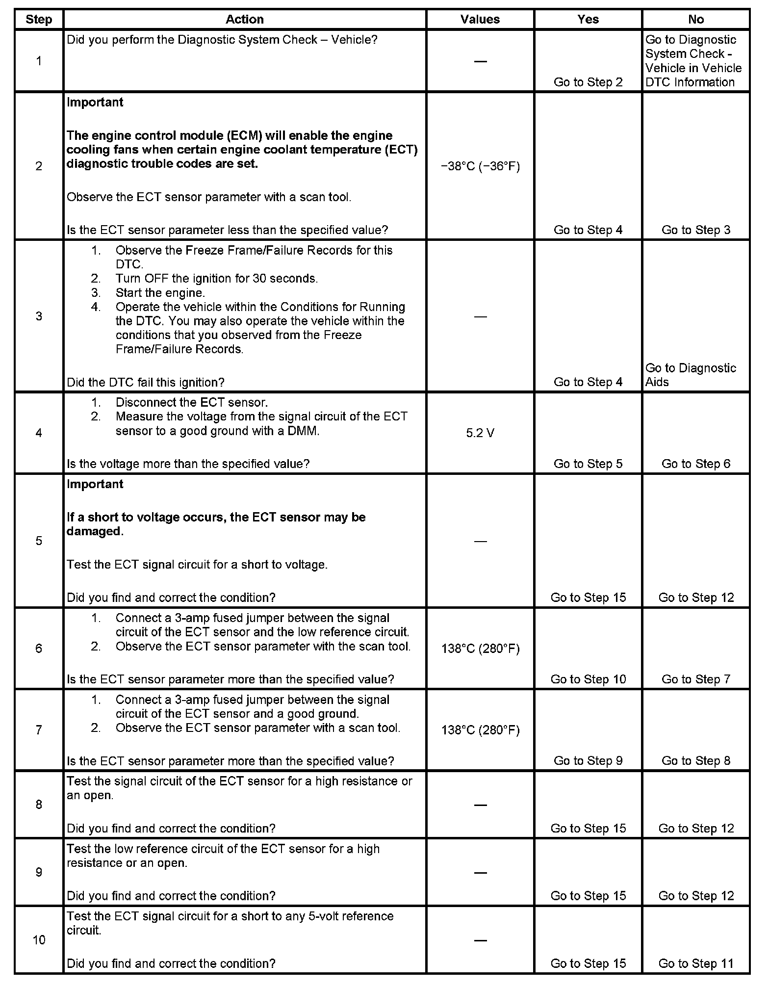 - Use the Temperature vs. Resistance table to test the ECT sensor. A skewed sensor could result in poor driveability conditions. Refer to Temperature vs Resistance.