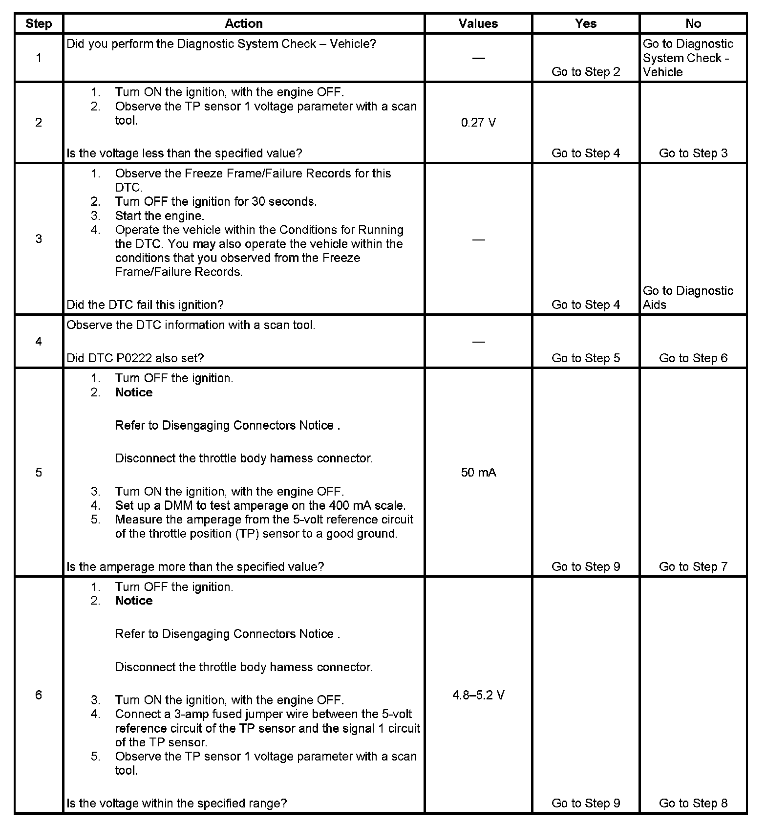 4. The TP sensors share a 5-volt reference circuit. If both DTCs P0122 and P0222 set, test for a condition in the 5-volt reference circuit.