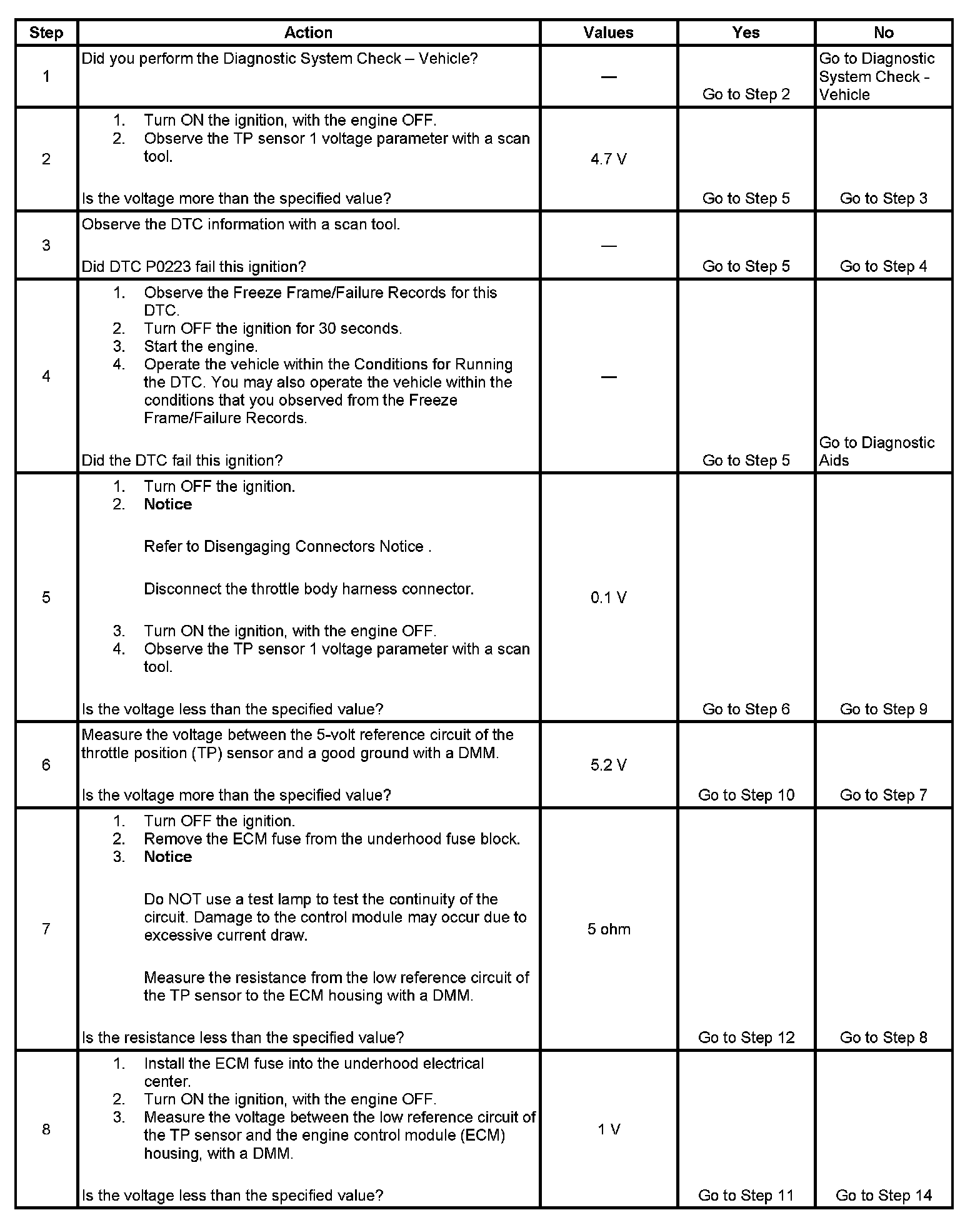 DTC P0123 Throttle Position (TP) Sensor 1 Circuit High Voltage
