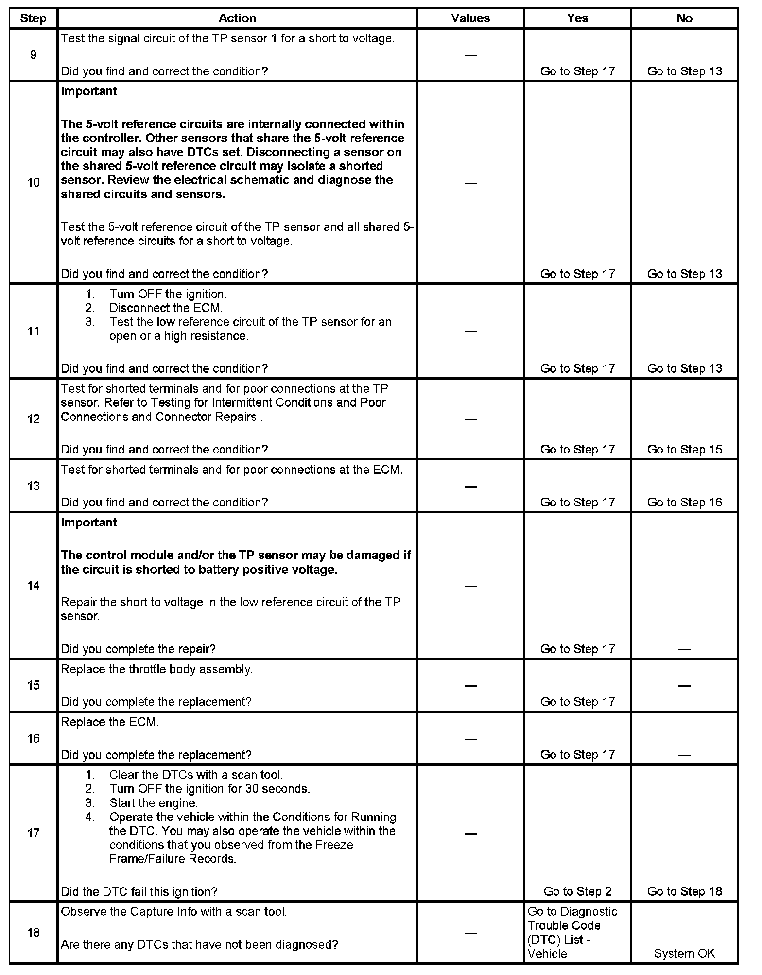 5. This step tests the signal circuit for a short to voltage. If the scan tool displays a voltage after the TP sensor is disconnected, the circuit is shorted to a voltage.