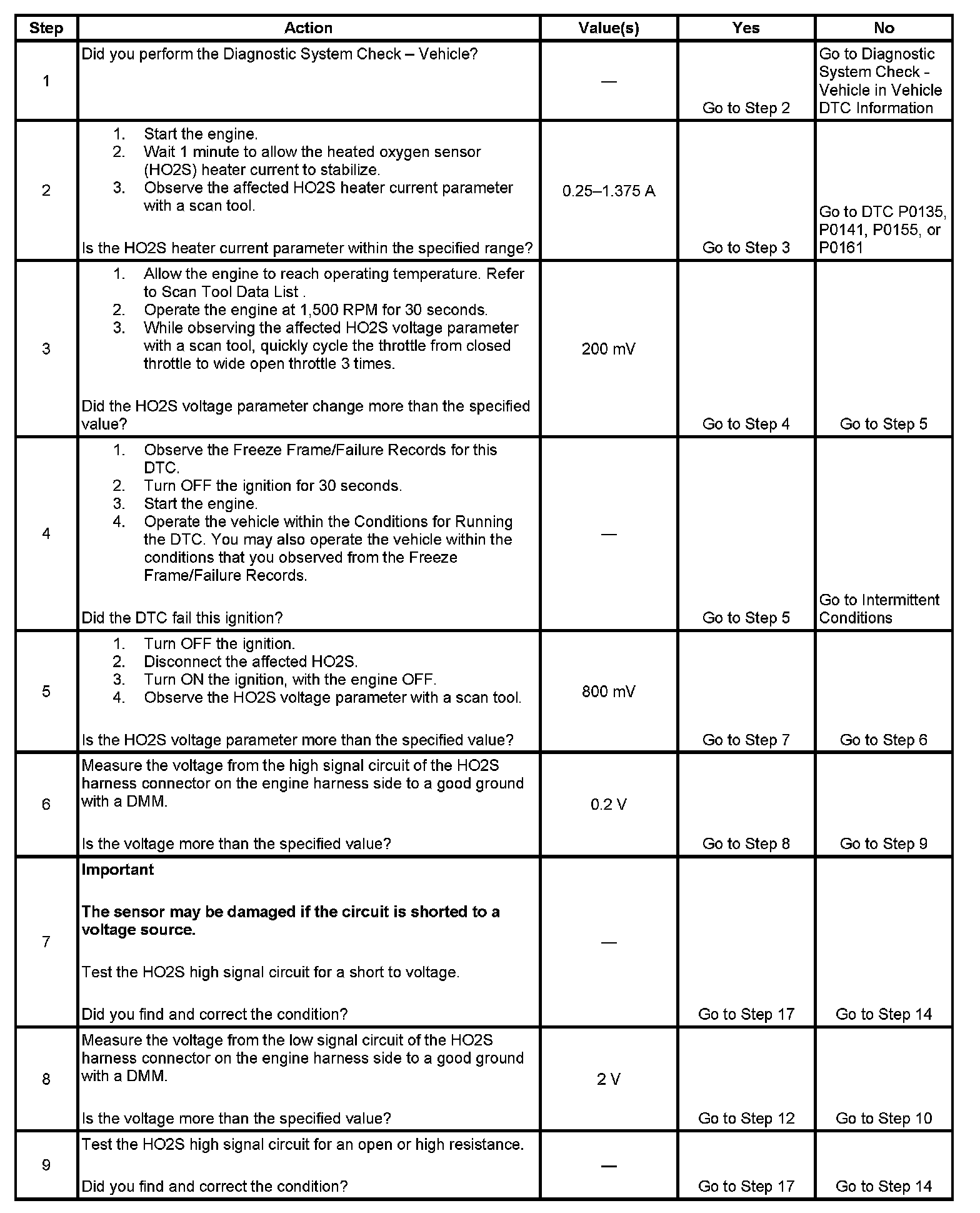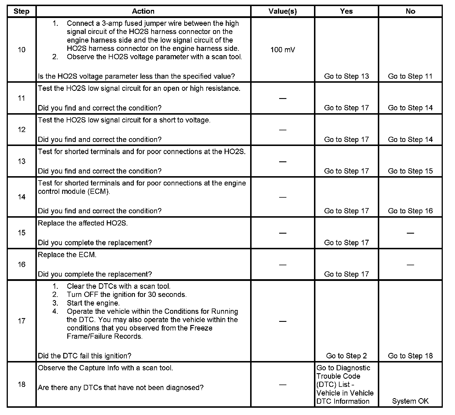 - The ECM detects that the affected HO2S voltage parameter is between 410-490 mV for 150 seconds.