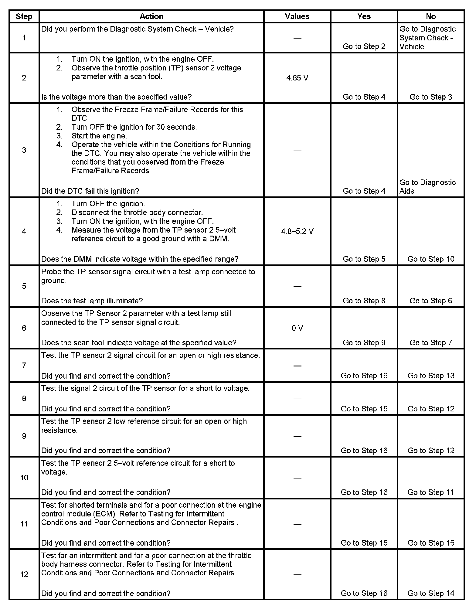 DTC P0223 Throttle Position (TP) Sensor 2 Circuit High Voltage