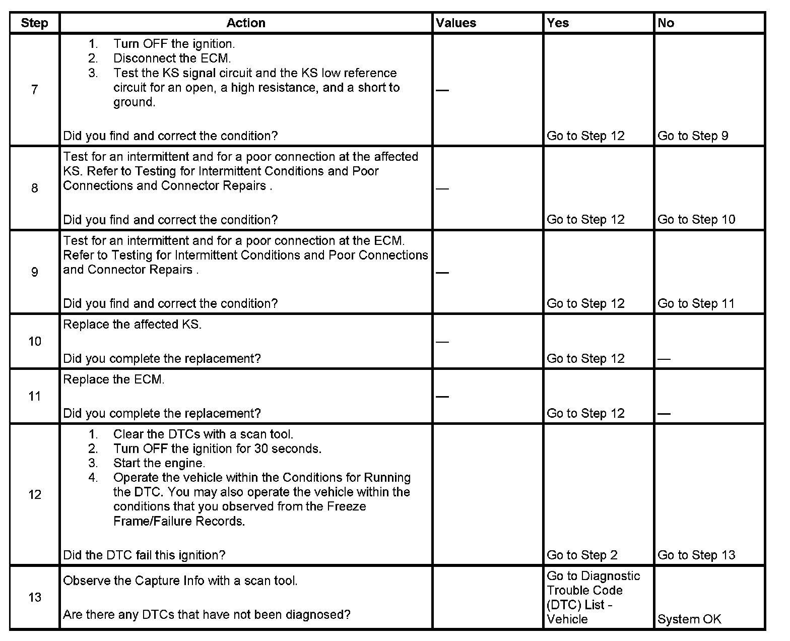 - Inspect the KS for physical damage. A KS that is dropped or damaged may cause a DTC to set.