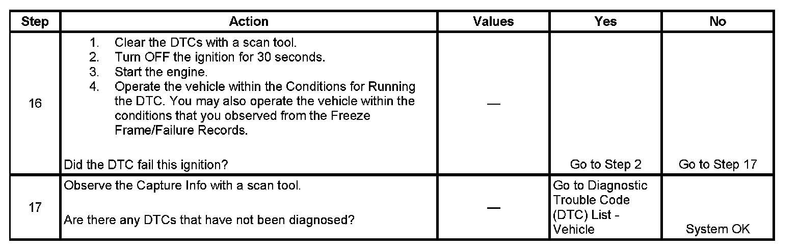 - A current DTC, Last Test Failed, clears when the diagnostic runs and passes.