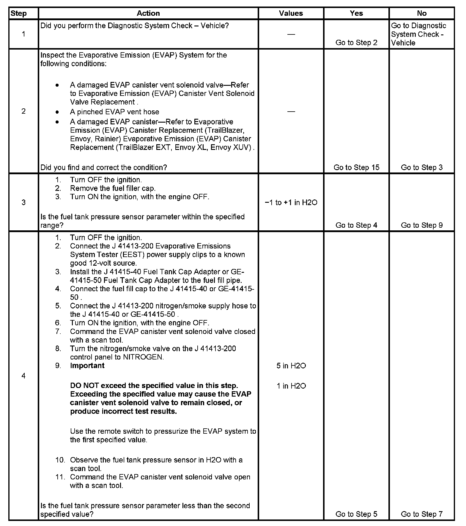 - When using the electronic emission system tester (EEST) to apply pressure, you can regulate the amount of pressure by activating the remote switch ON and OFF while observing pressure in the EVAP system using a scan tool. DO NOT use more than 5 in H2O. More than 5 in H2O applied to the EVAP system can cause the canister vent solenoid valve to temporarily remain in the closed position, which could lead to misdiagnosis in this procedure.