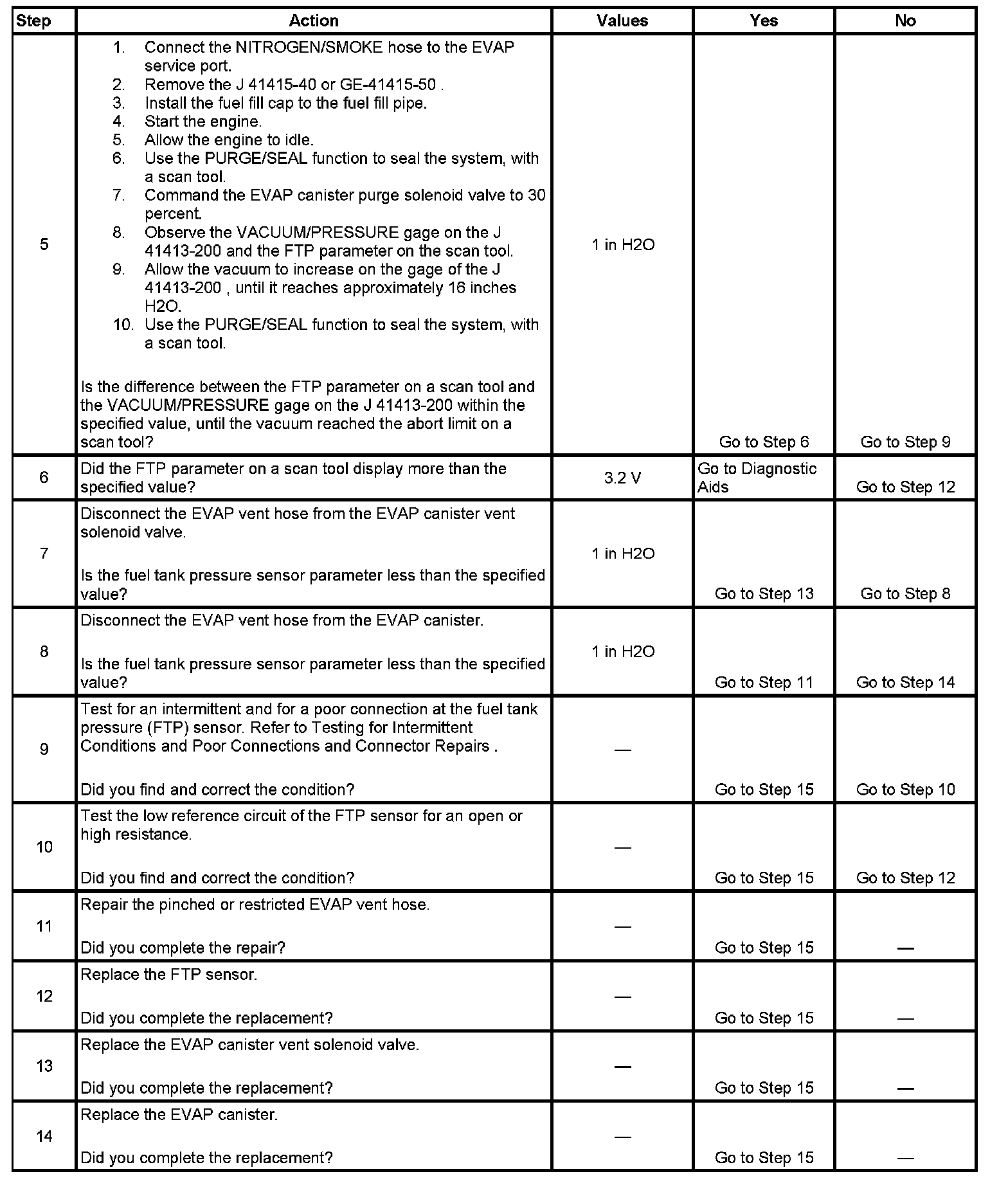 - The fuel tank pressure sensor is less than -12 inches H2O.