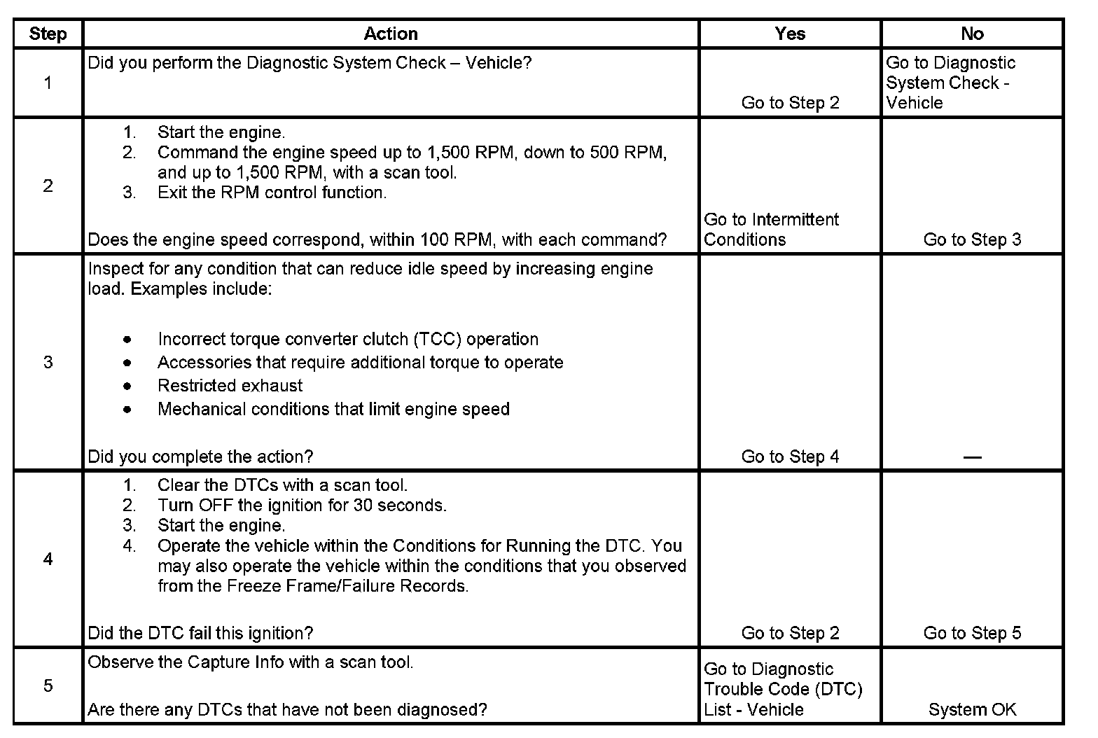 - The actual idle speed is approximately 100 RPM lower than the desired idle speed.