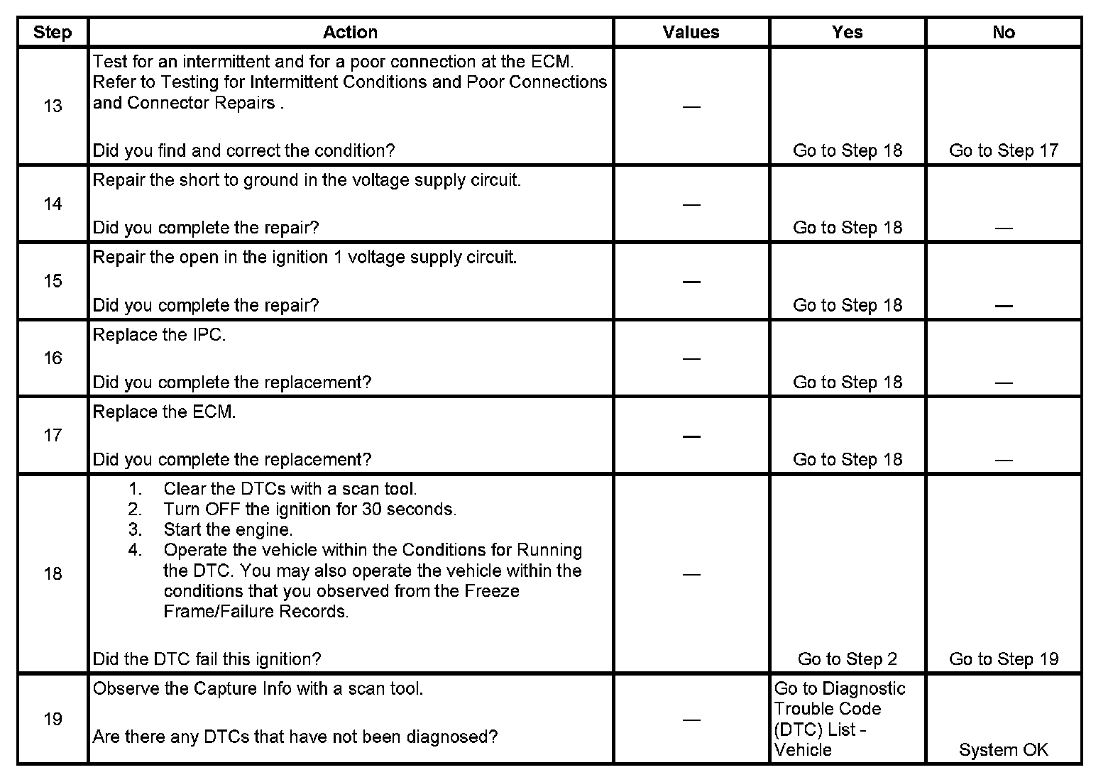 6. This step tests for a short to ground in the MIL control circuit. With the engine control module (ECM) disconnected and the ignition ON, the MIL should be OFF.