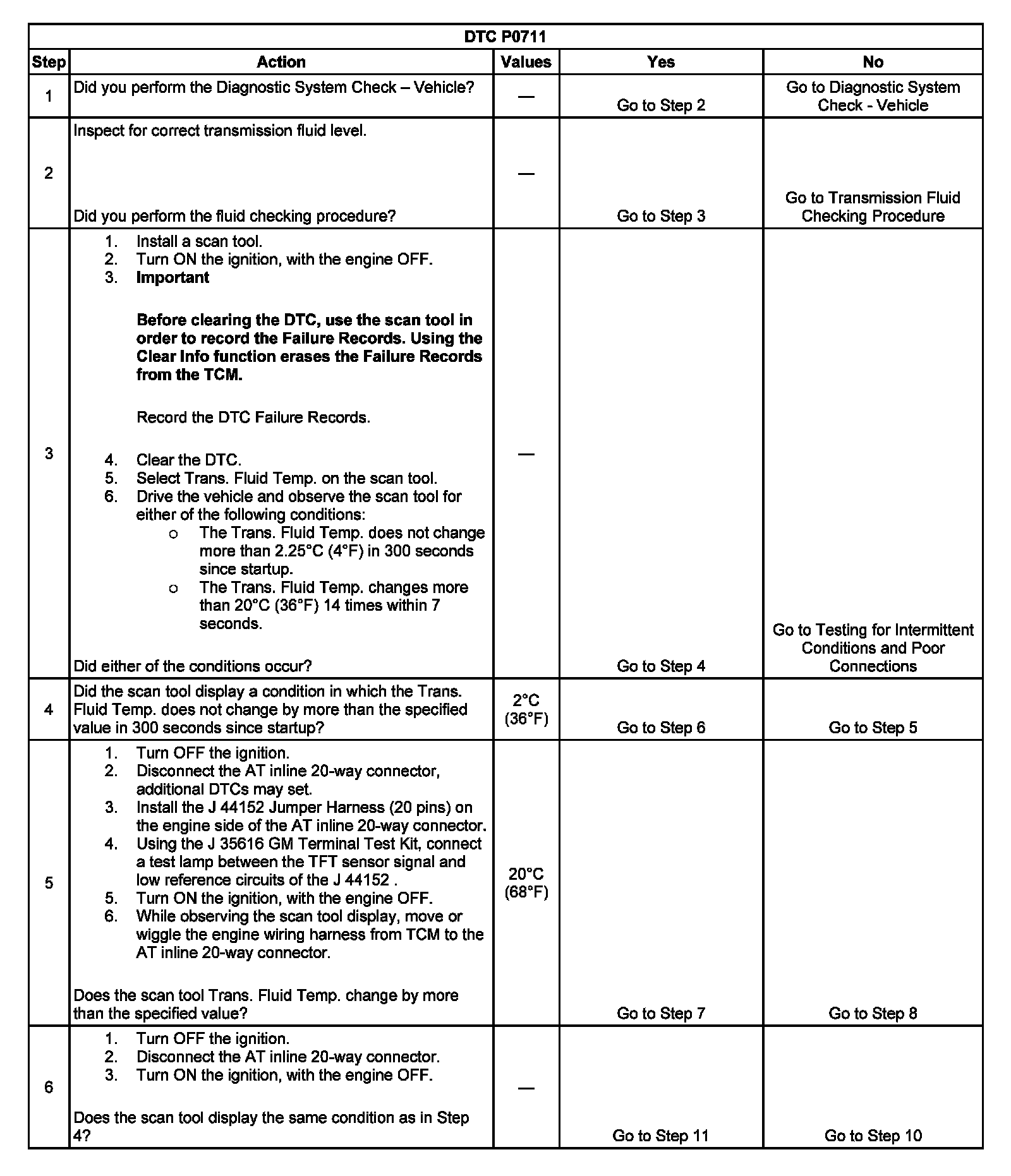 ^ The TCM stores DTC P0711 in TCM history.