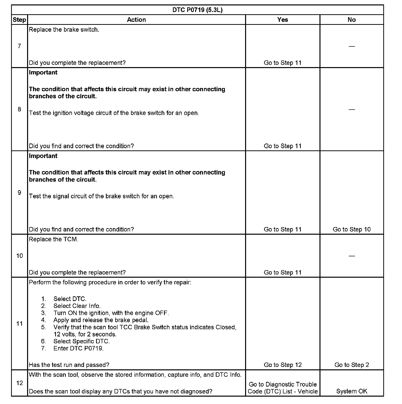 ^ Inspect for ABS DTCs. A faulty ABS condition may contribute to setting DTC P0719.