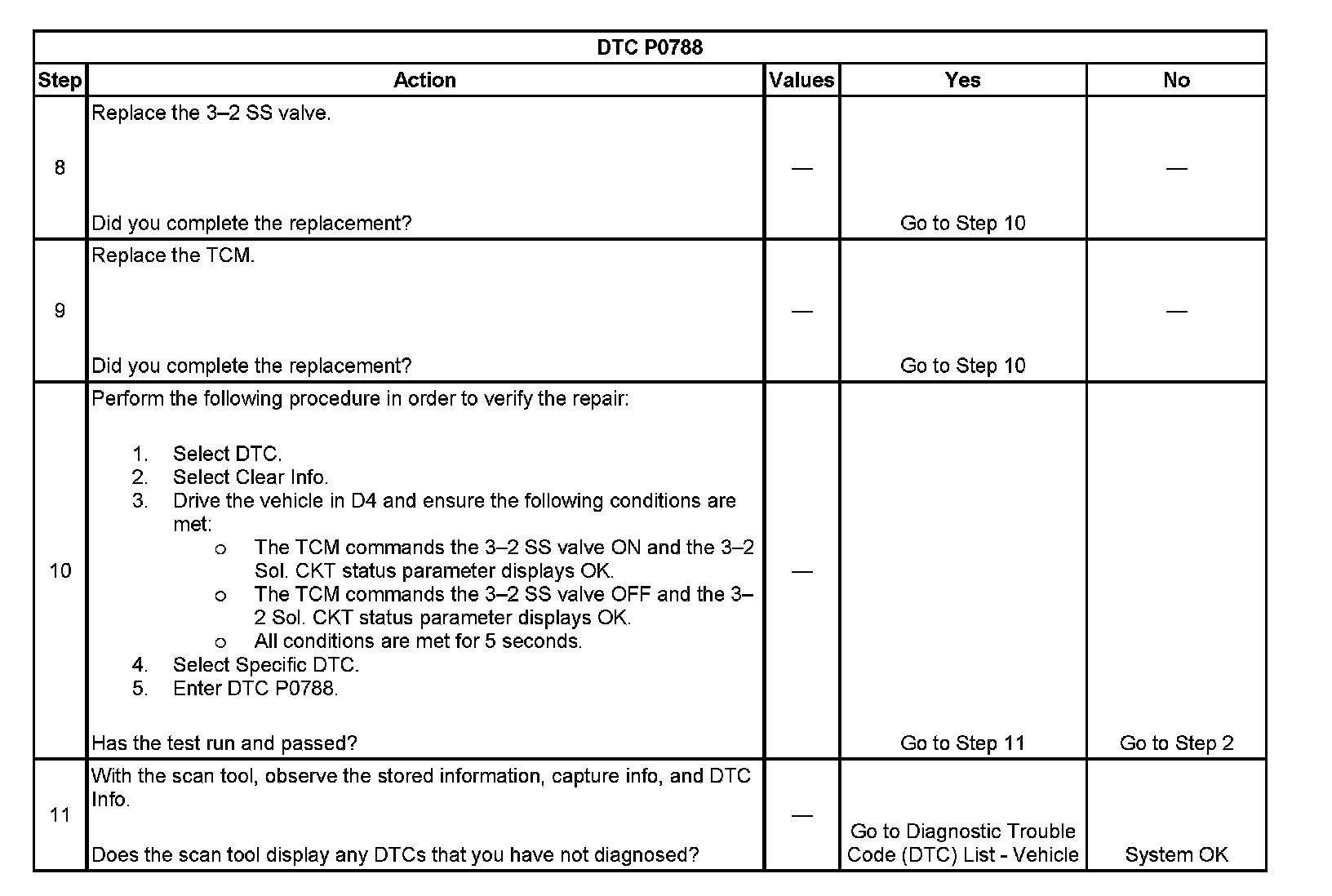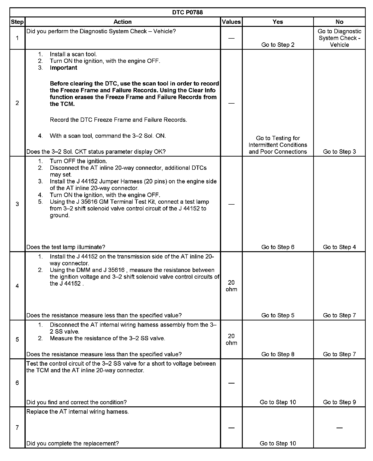 When the TCM detects a continuous short to voltage in the 3-2 shift solenoid valve control circuit, then DTC P0788 sets. DTC P0788 is a type A DTC.