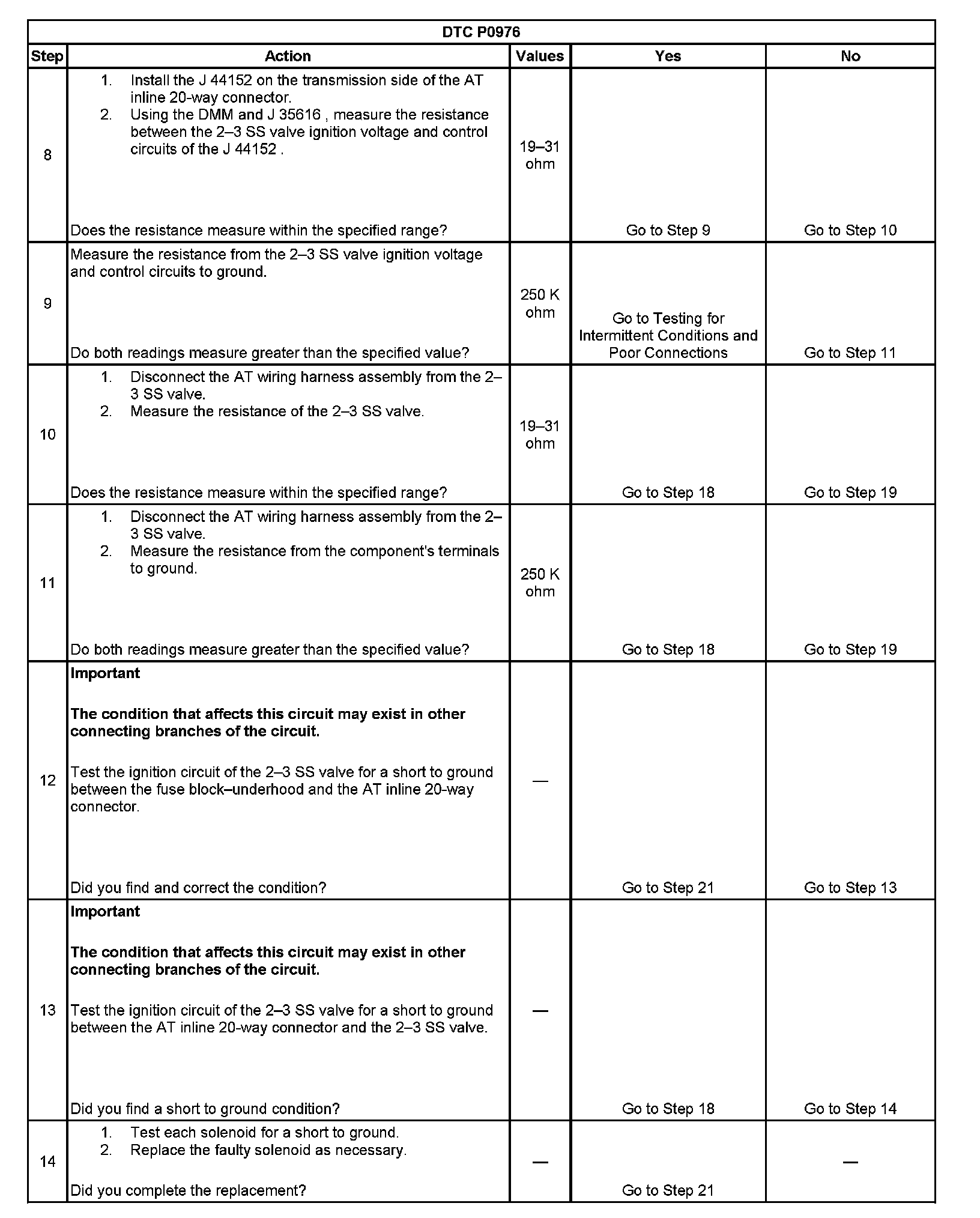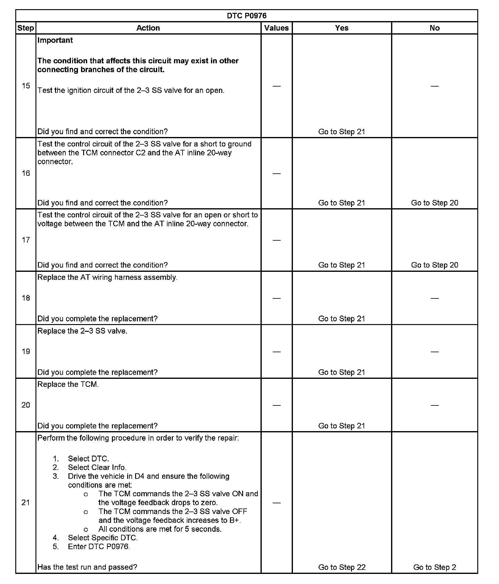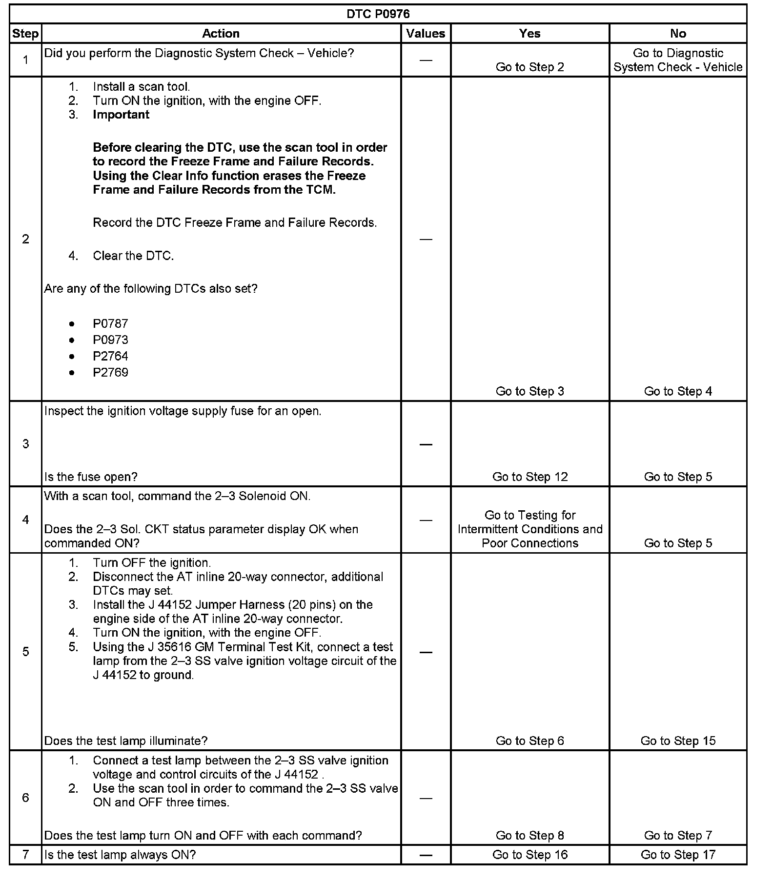 DTC P0976 2-3 Shift Solenoid (SS) Control Circuit Low Voltage