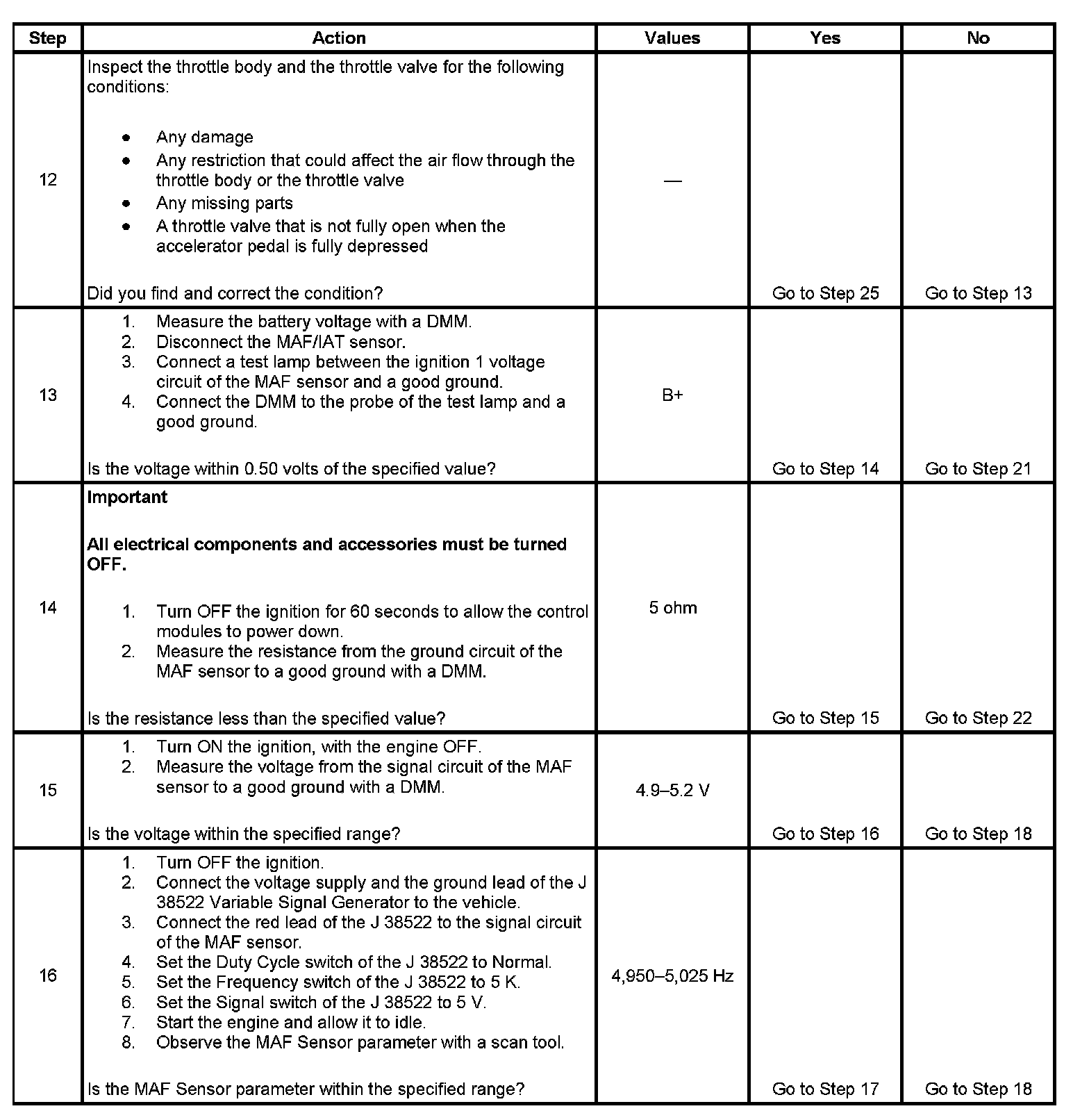 16. This step will determine if the ECM can accurately process the frequency signal that it receives from the MAF sensor.