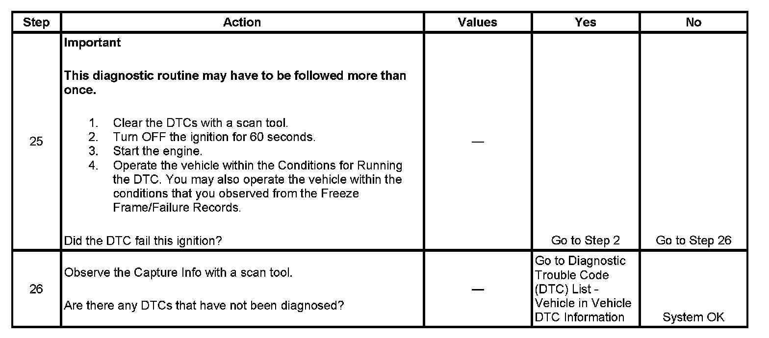 - If the condition is intermittent, refer to Inducing Intermittent Fault Conditions in Diagnostic Aids and Intermittent Conditions.