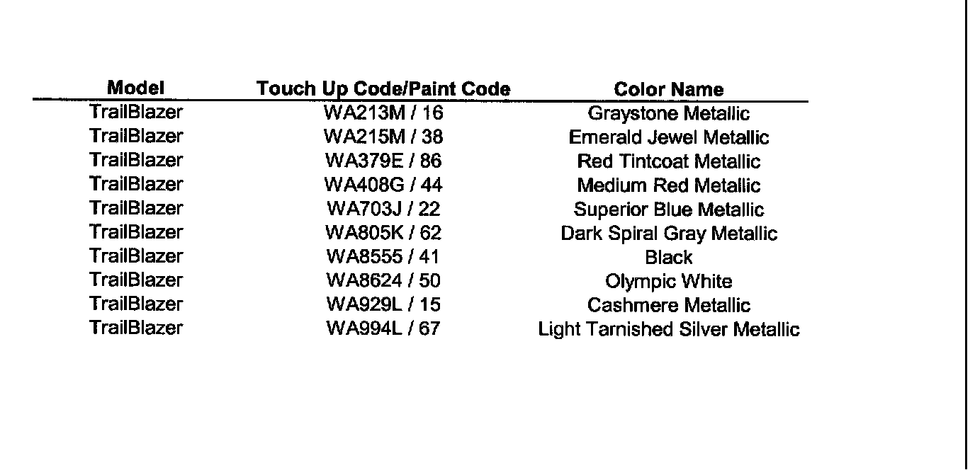 TrailBlazer 2WD V8-5.3L VIN M