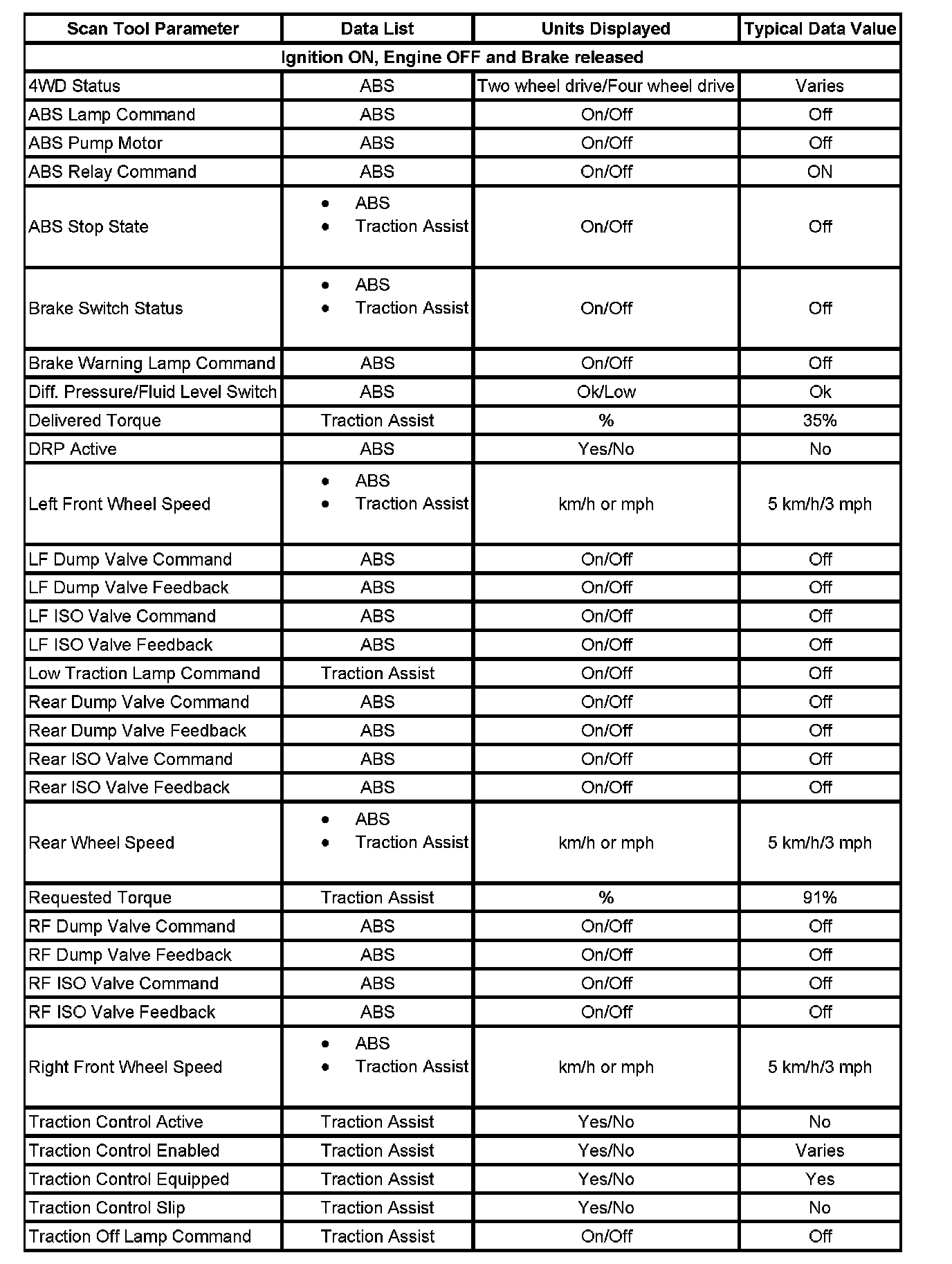 Scan Tool Data List