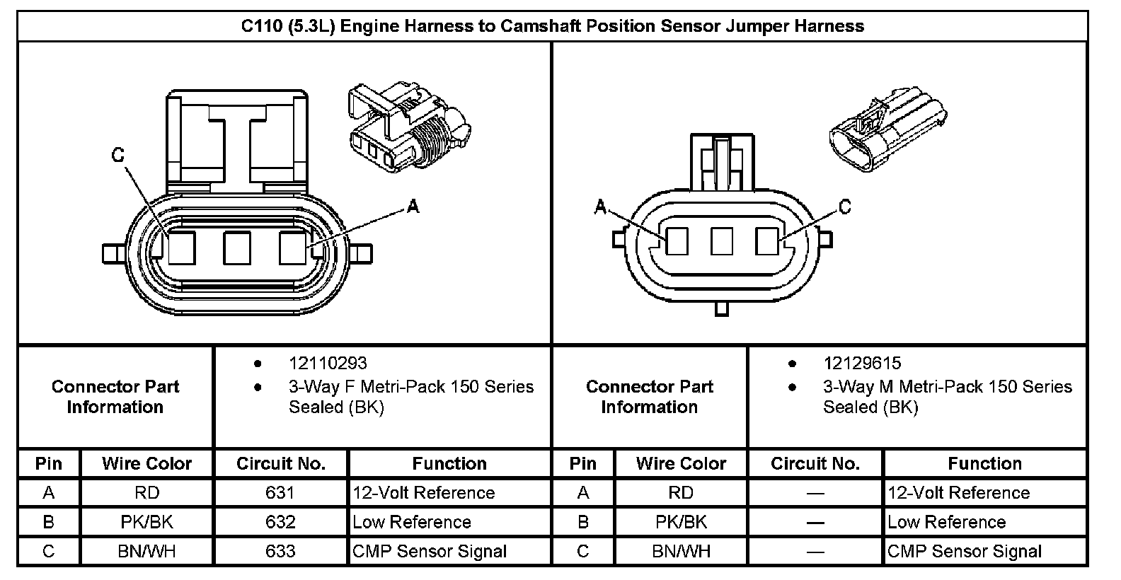 C110 Engine Harness To Camshaft Position Sensor Jumper Harness: