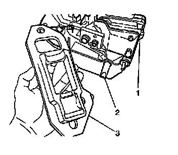 4. Remove the HVAC pass thru seal (3) from the HVAC module-auxiliary (1).