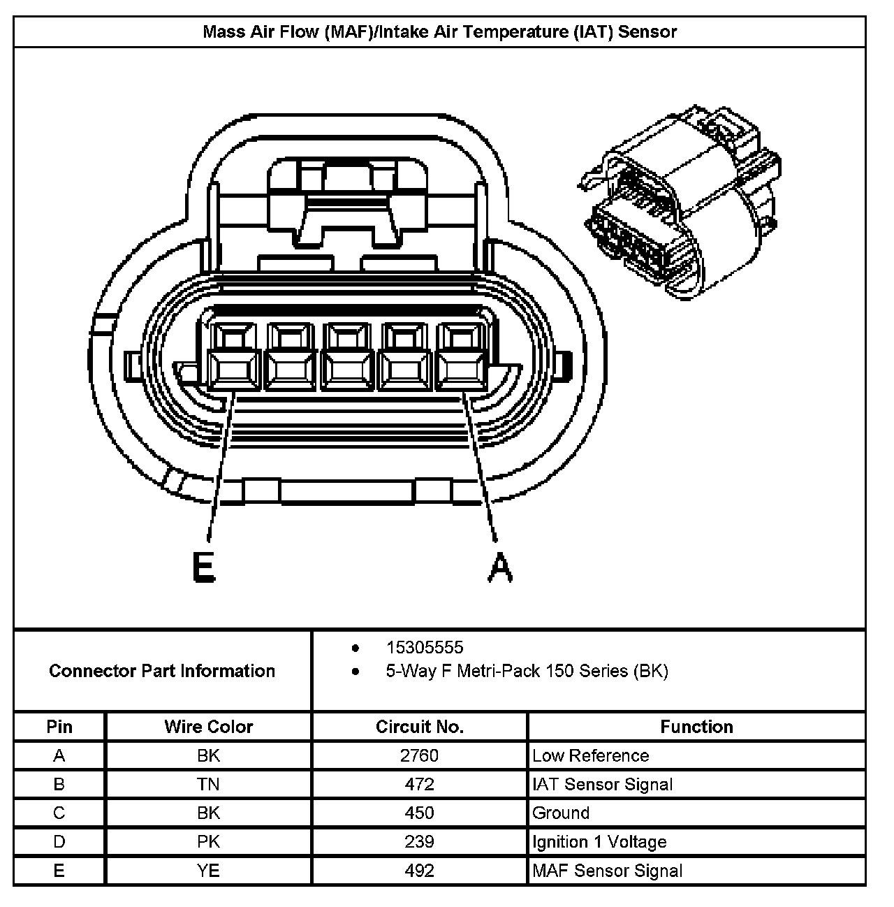Mass Air Flow (MAF)/Intake Air Temperature (IAT) Sensor: