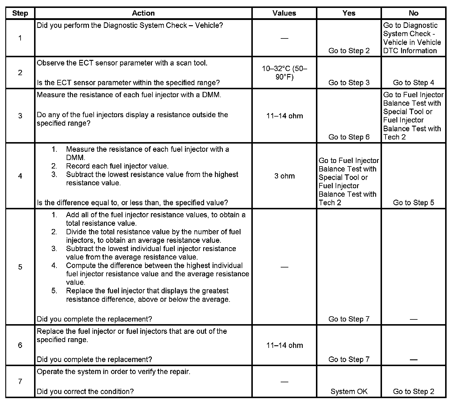 - Perform the fuel injector coil test within the conditions of the customers concern. A fuel injector condition may only be apparent at a certain temperature, or under certain conditions.