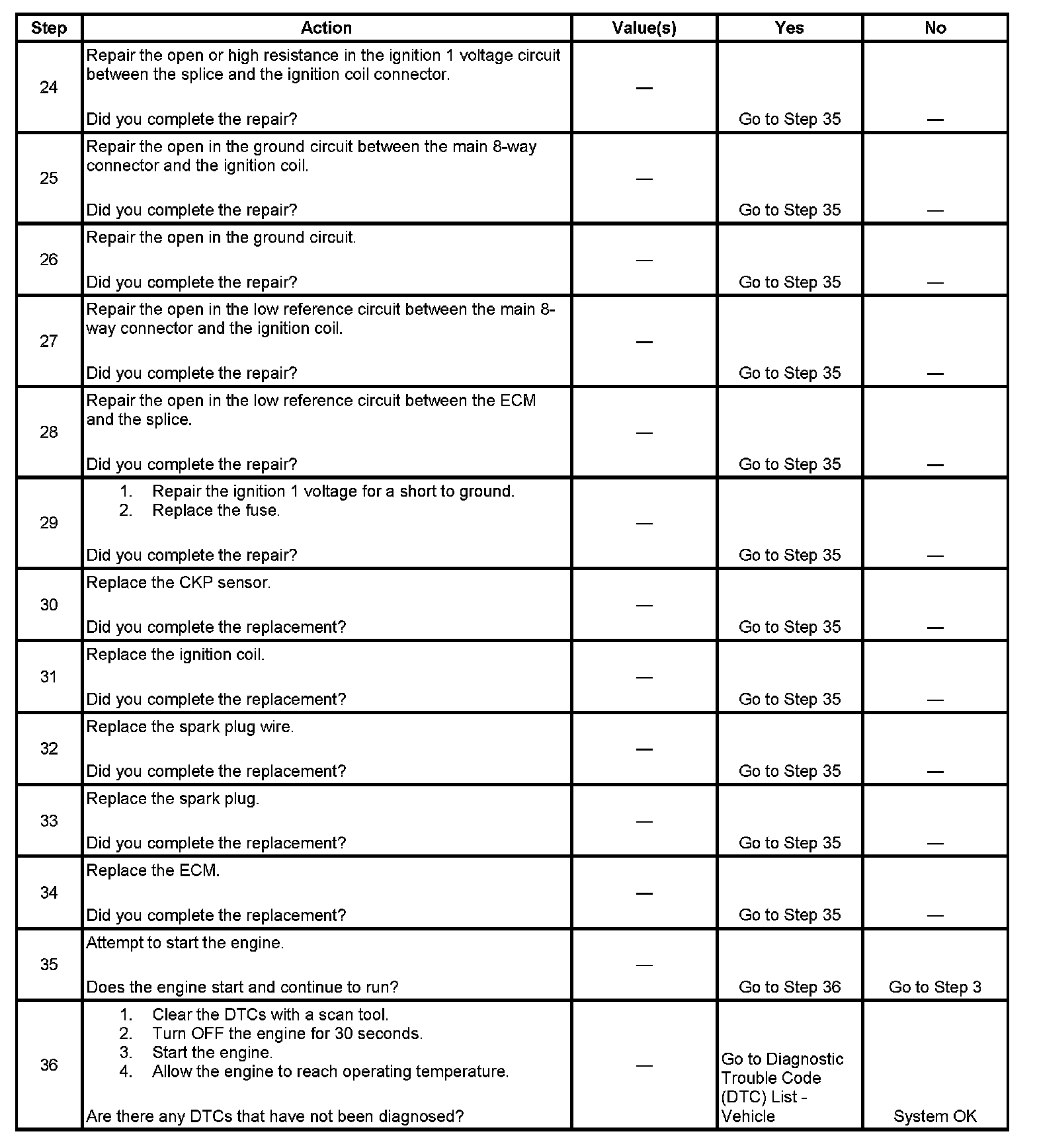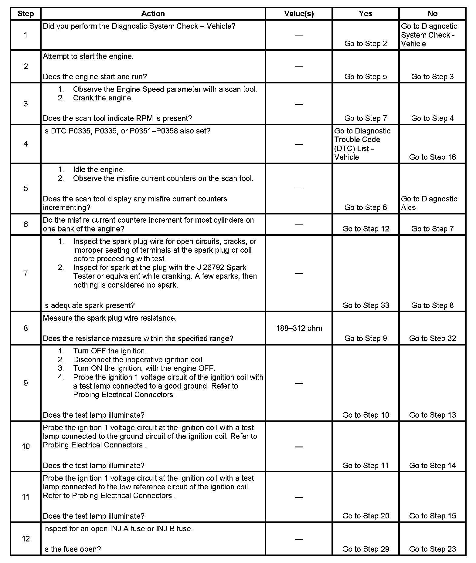12. A good indication that the fuse is open is all off the misfire current counters are incrementing on one side of the engine. Inspect the ignition positive voltage circuit for a grounded circuit. If the fuse is open and the ignition coil circuits are OK, inspect the injector circuits for being grounded.
