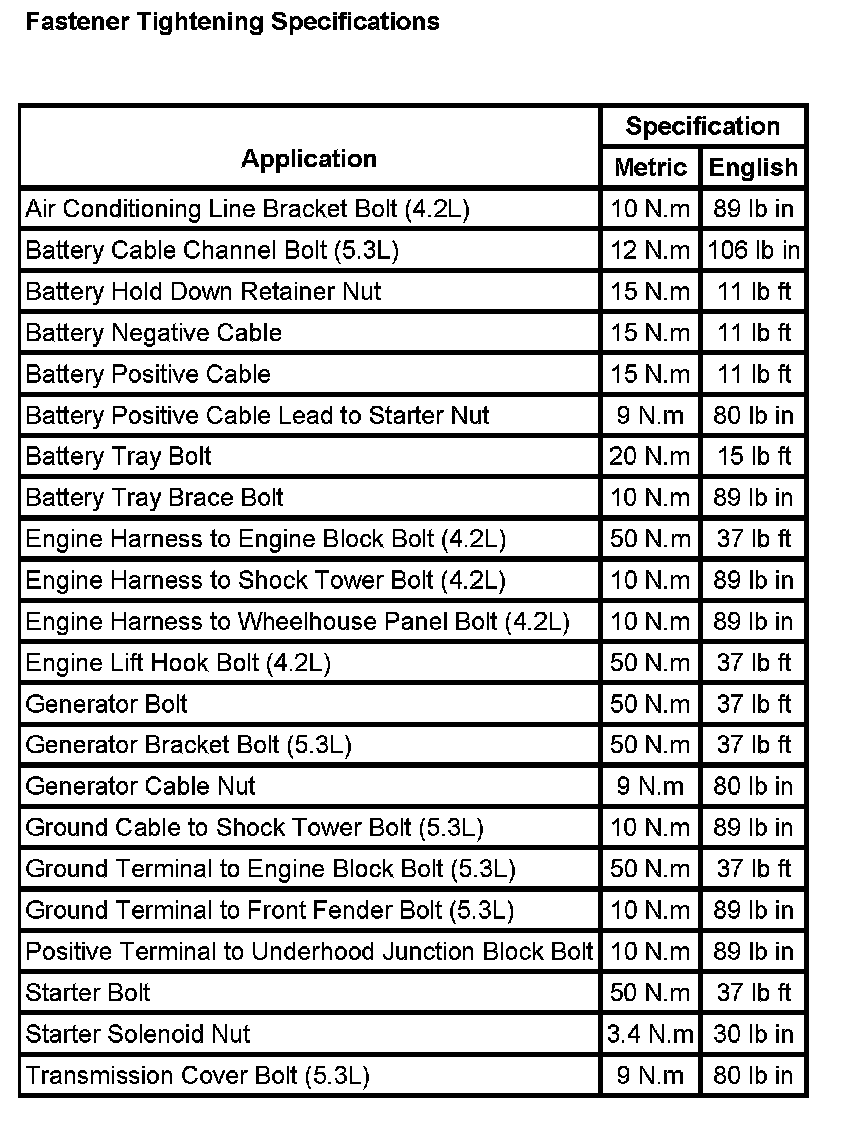 Starting and Charging: Specifications