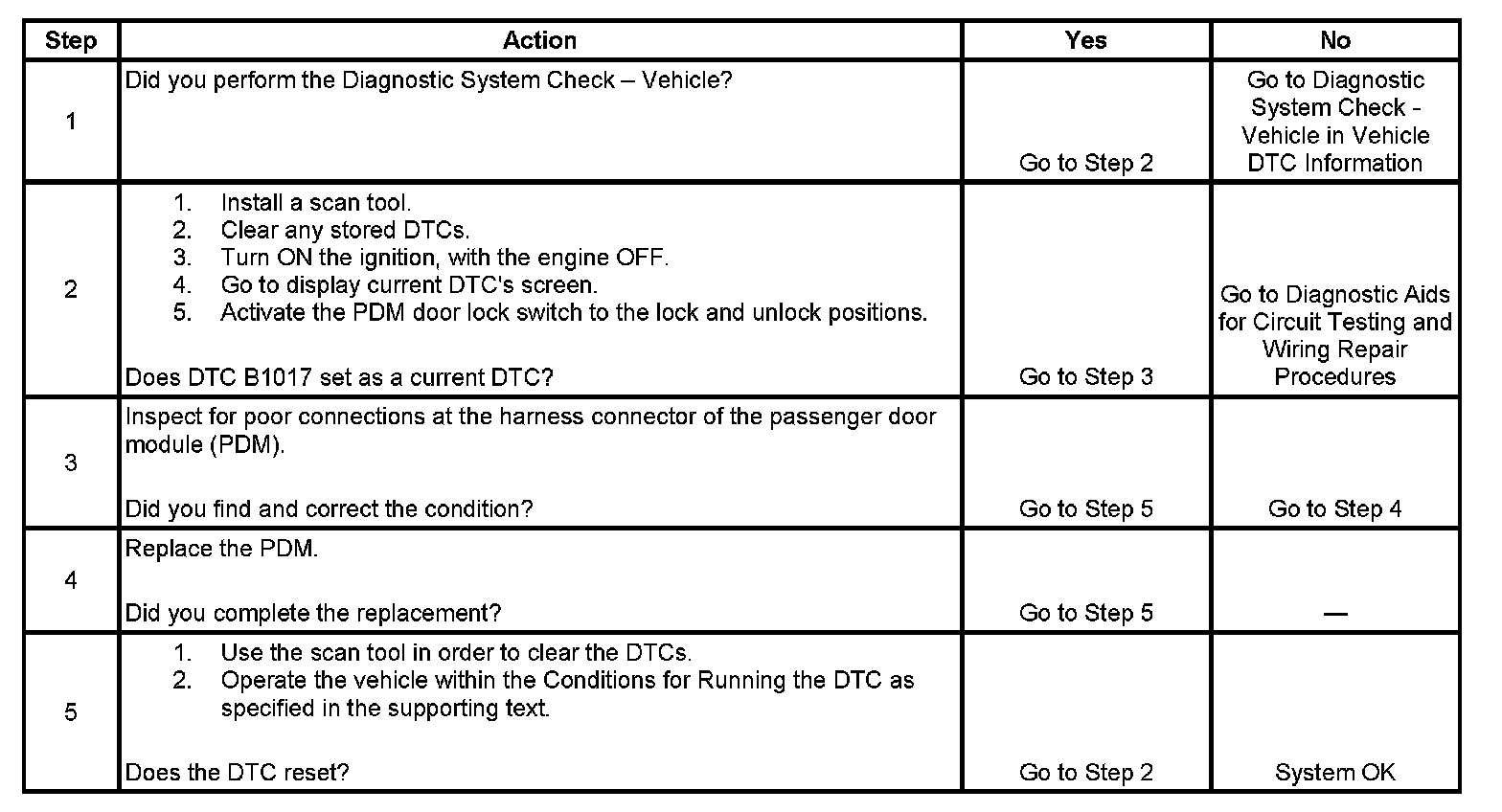 DTC B1017 (PASSENGER DOOR MODULE (PDM))