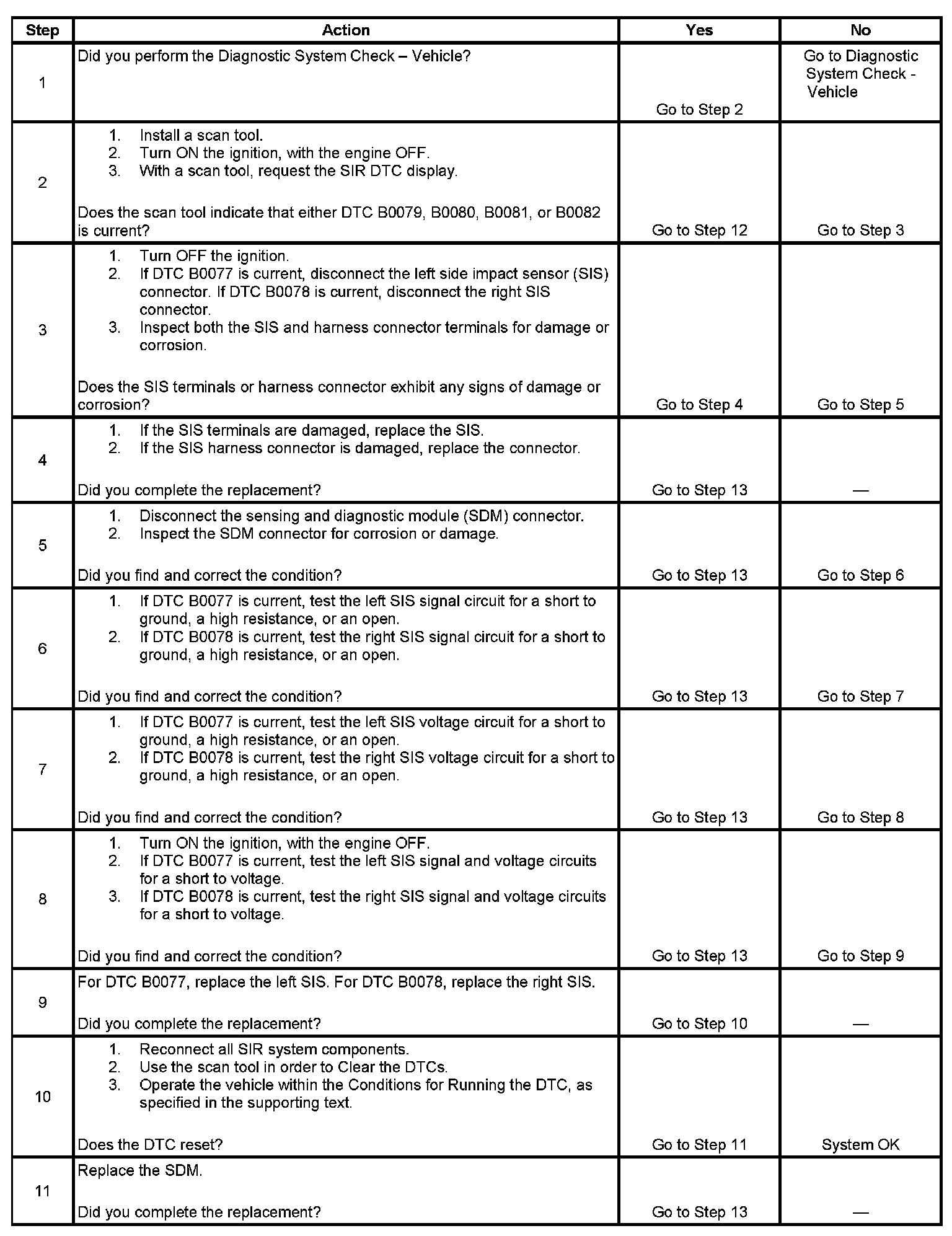- DTCs B0080 and B0082 will set when the SDM has received a NOK (Not OK) message from the SIS.