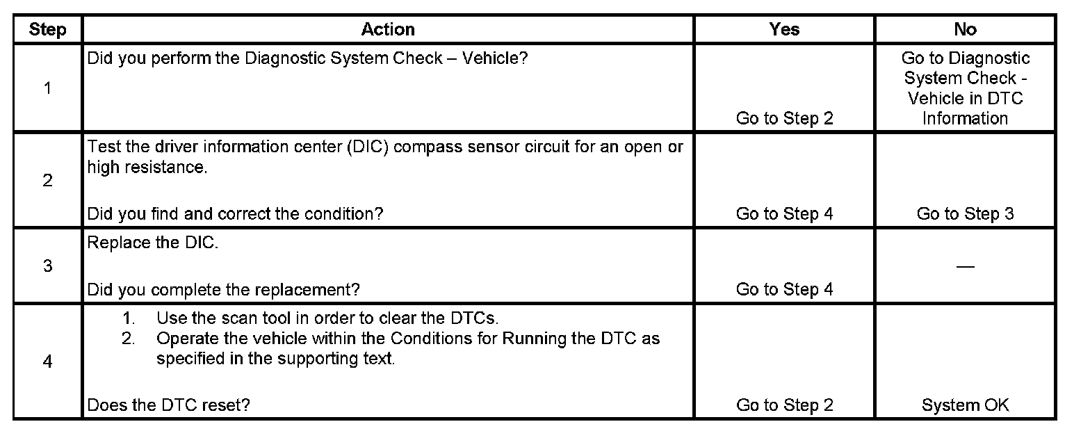 The DIC does not detect the compass sensor. This may be due to a faulty sensor that is not connected to the DIC.