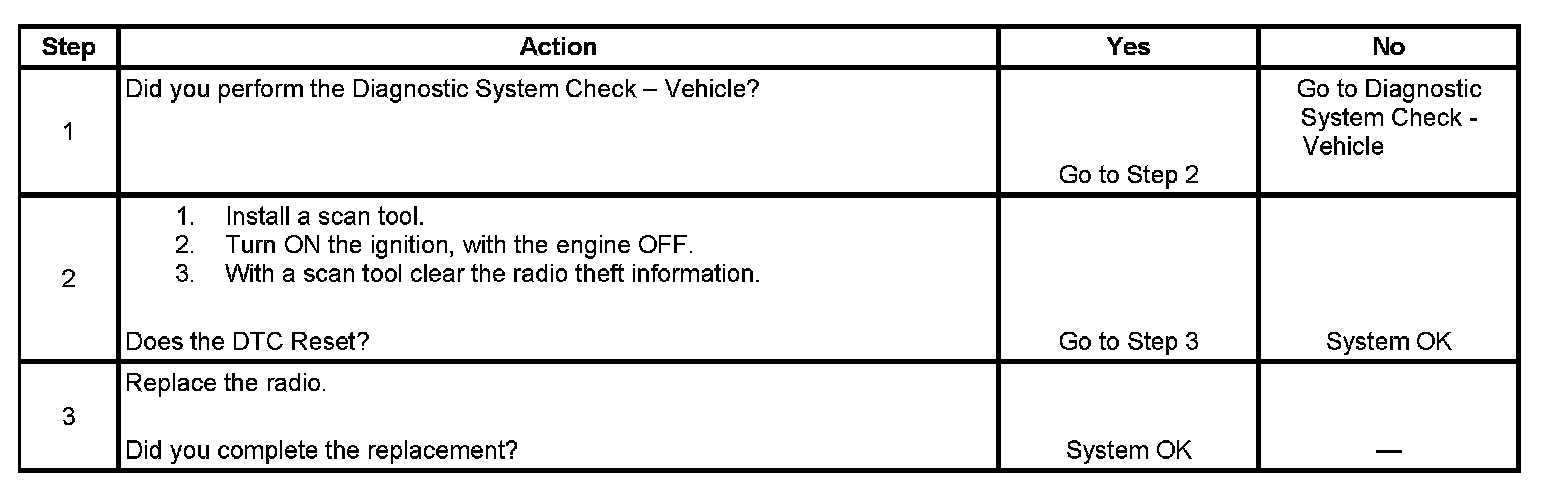 This DTC is generated by the module when the theft lock is activated. This occurs when the VIN as received over the class 2 communication circuit and the vehicle identification number (VIN) as stored in the module memory do not match. This also occurs when no VIN is received over the class 2 circuit. The only circuit required is the class 2 communications line.