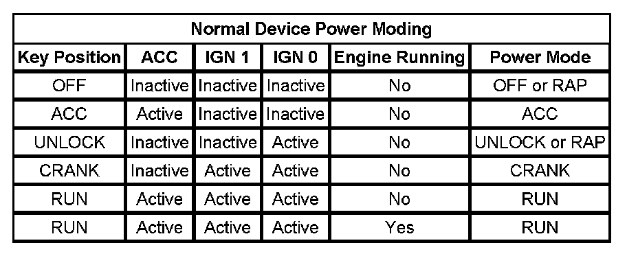 Class 2 communications will not start until the vehicle systems "on" power mode has been identified. Three discrete wires from the ignition switch contacts are monitored by the instrument cluster (IPC) in order to determine the present power mode ignition switch position. The IPC communicates the system power mode to all class 2 modules on the class 2 serial data line.