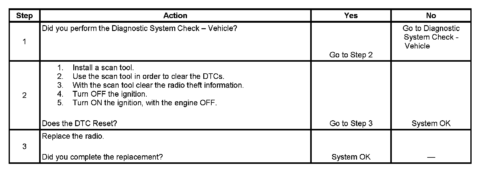2. Clear all DTCs and radio theft information. Cycle the ignition in order for the radio to learn the VIN.
