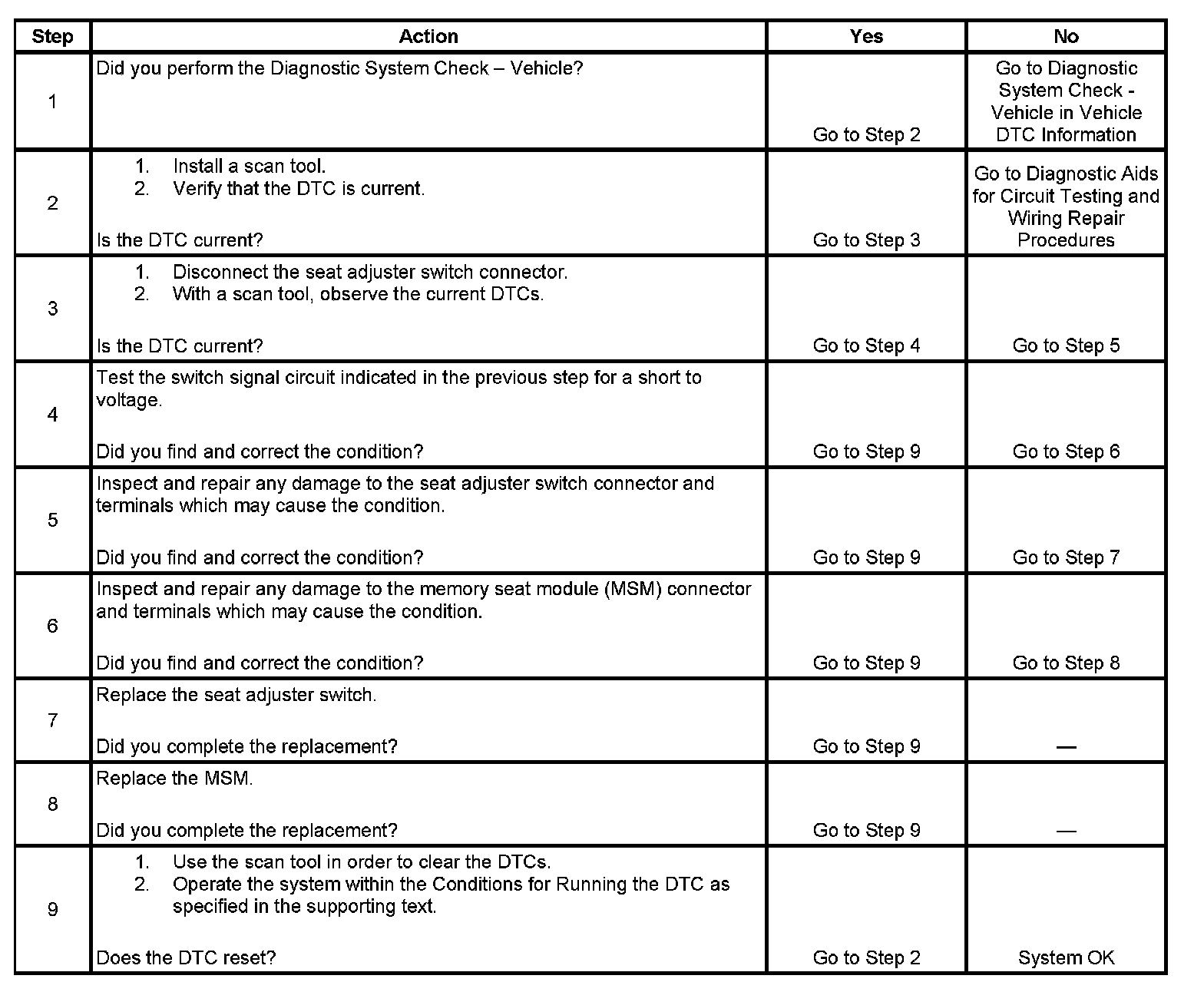 3. This step tests the seat adjuster switch for an internal fault.