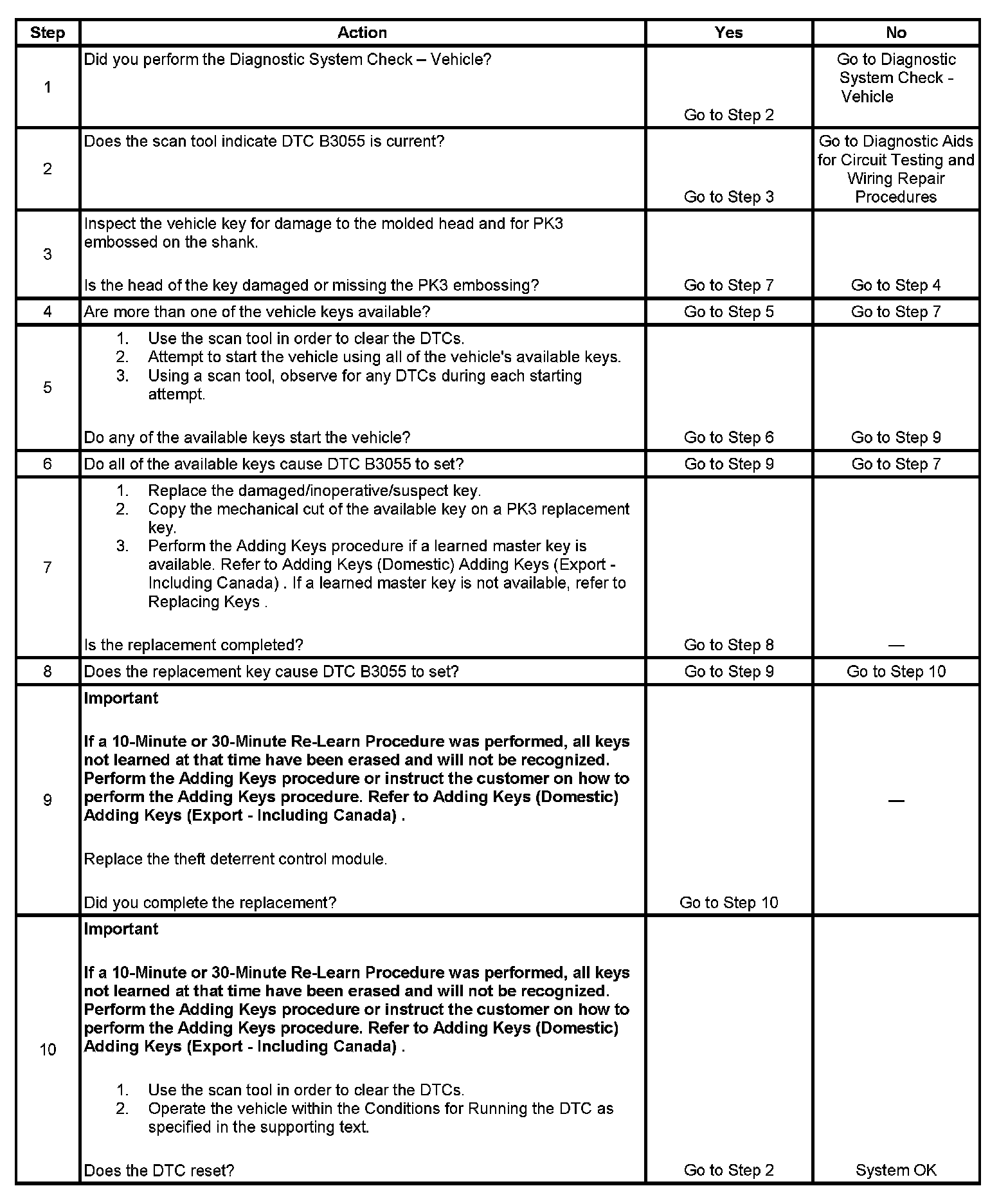 3. The key must be a PK3 transponder key with an operating transponder for the system to work.