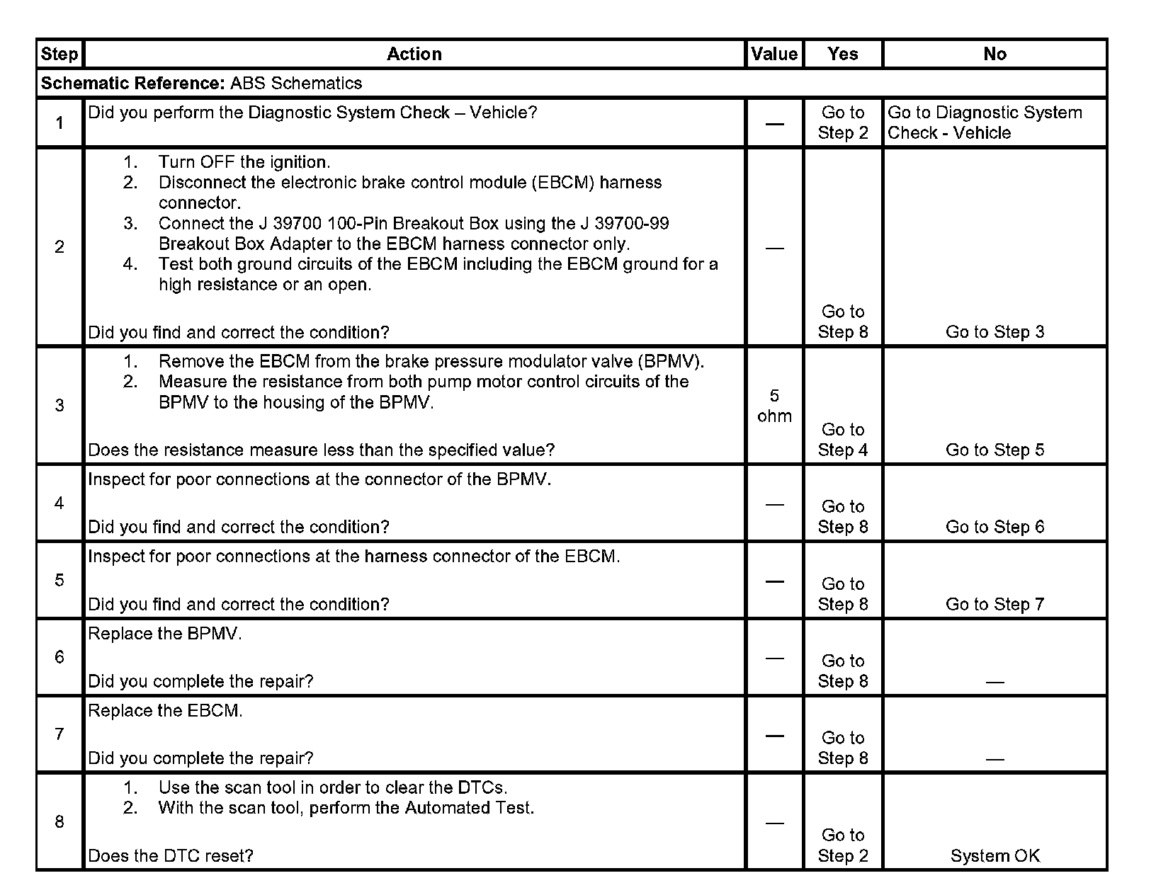 3. This step tests the pump motor circuits of the BPMV for a short to the housing of the BPMV.
