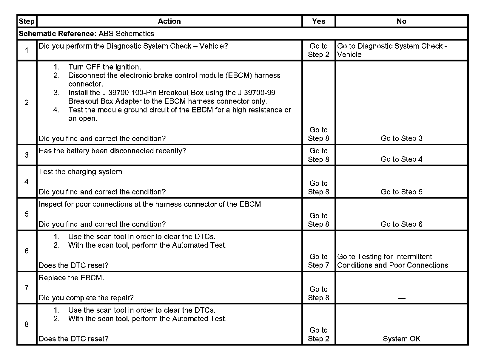 ^ The EBCM automatically clears the history DTC when a current DTC is not detected in 100 consecutive drive cycles.