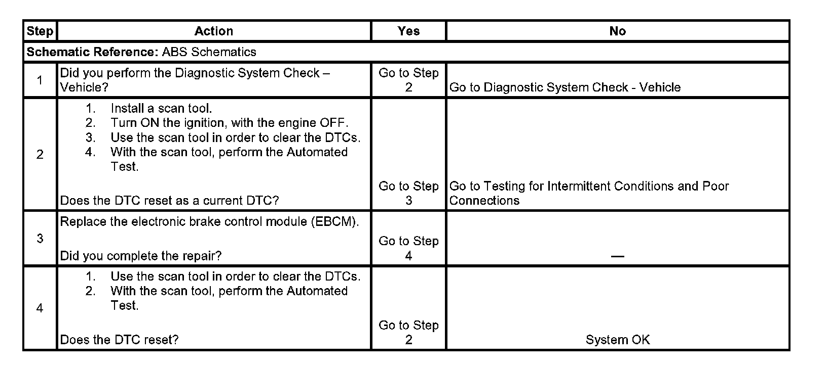 ^ The EBCM automatically clears the history DTC when a current DTC is not detected in 100 consecutive drive cycles.