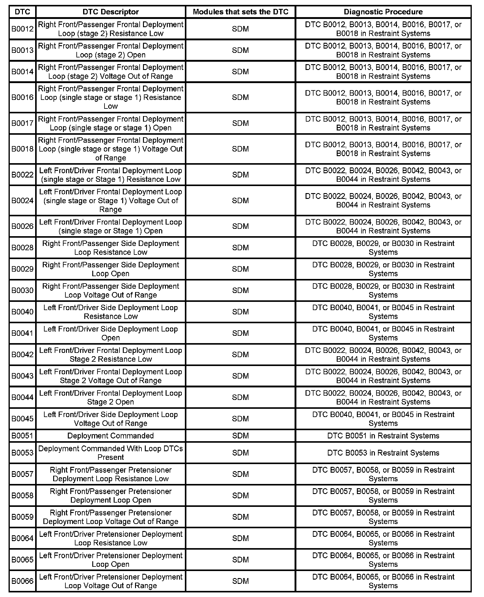 DTC's B0012 - B0066: