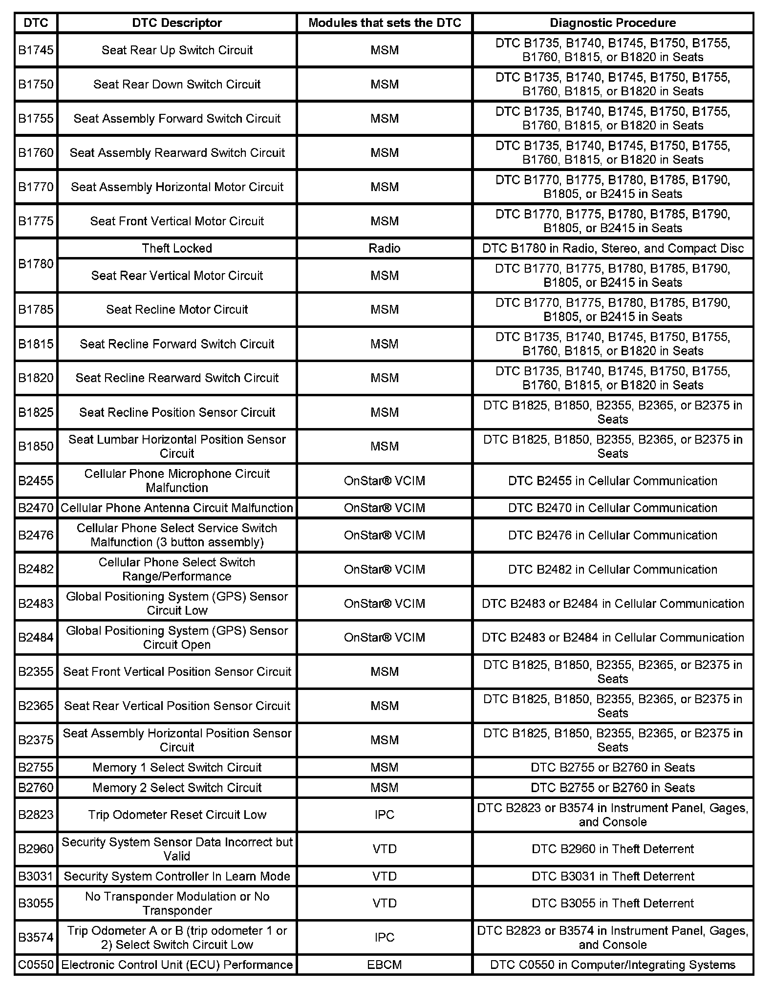 DTC's B1745 - C0550: