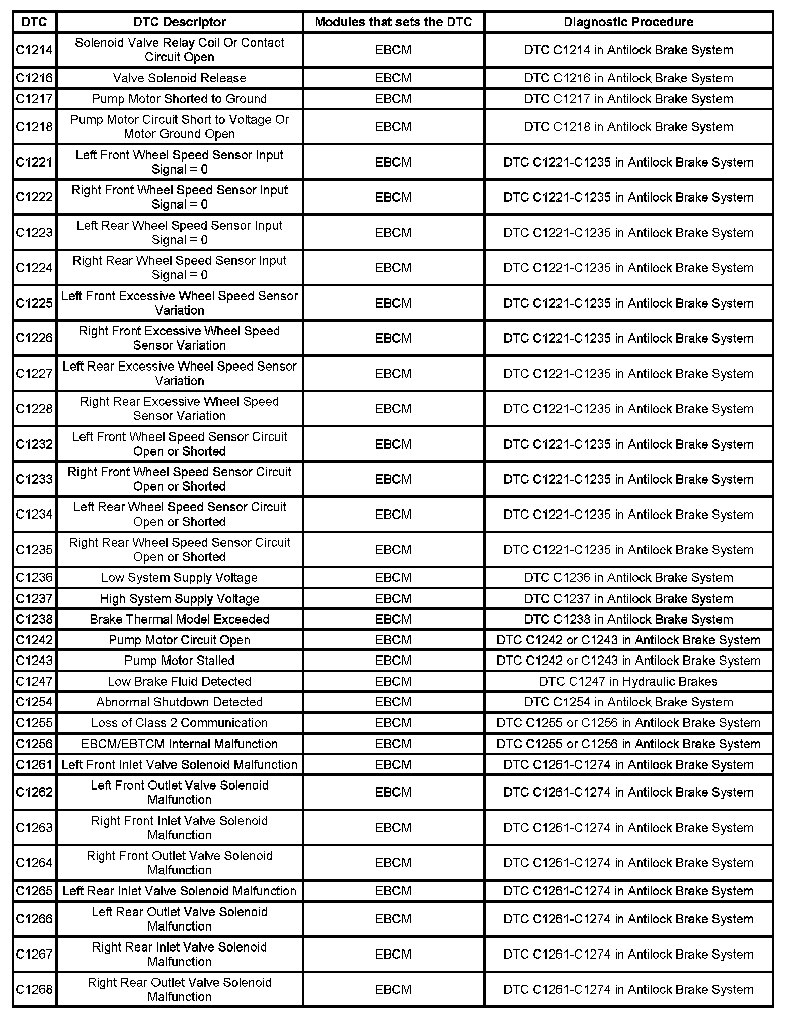 DTC's C1214 - C1268: