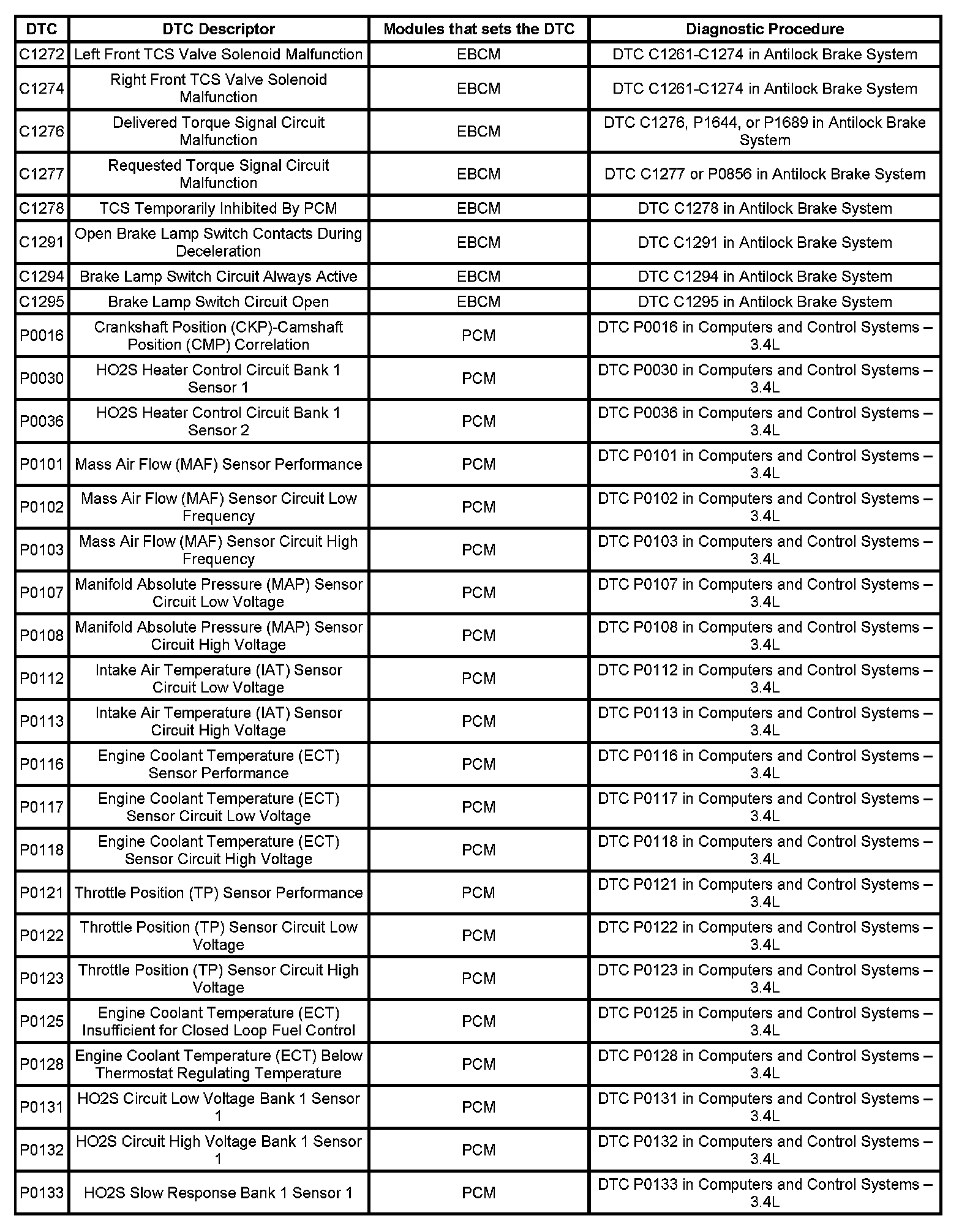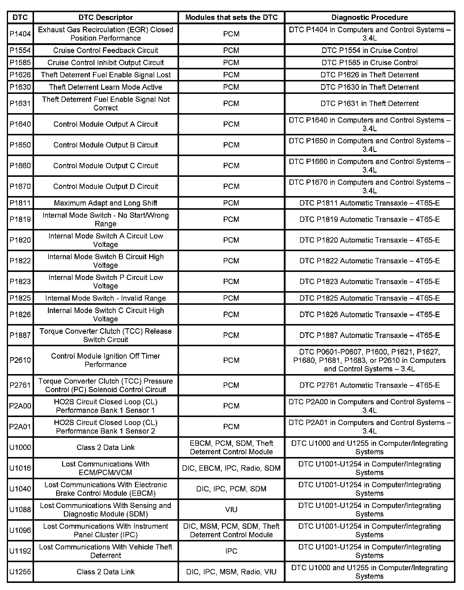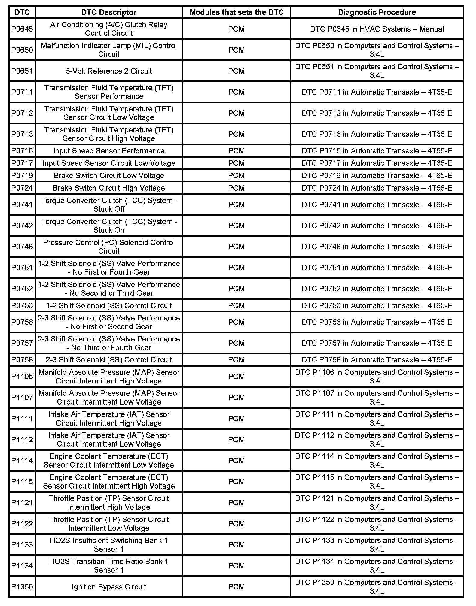 This master DTC list includes all applicable DTCs in alphanumeric order with descriptors.