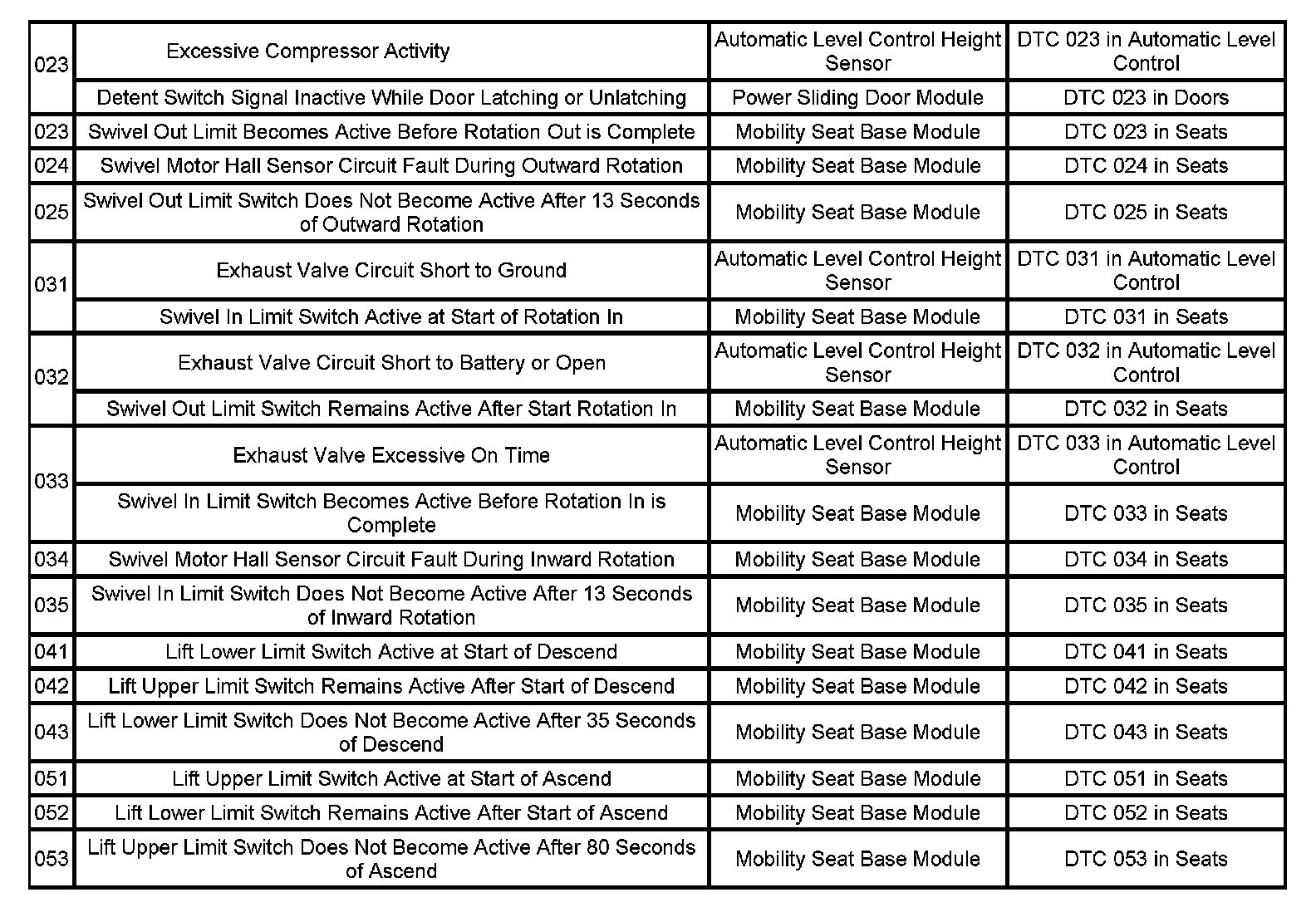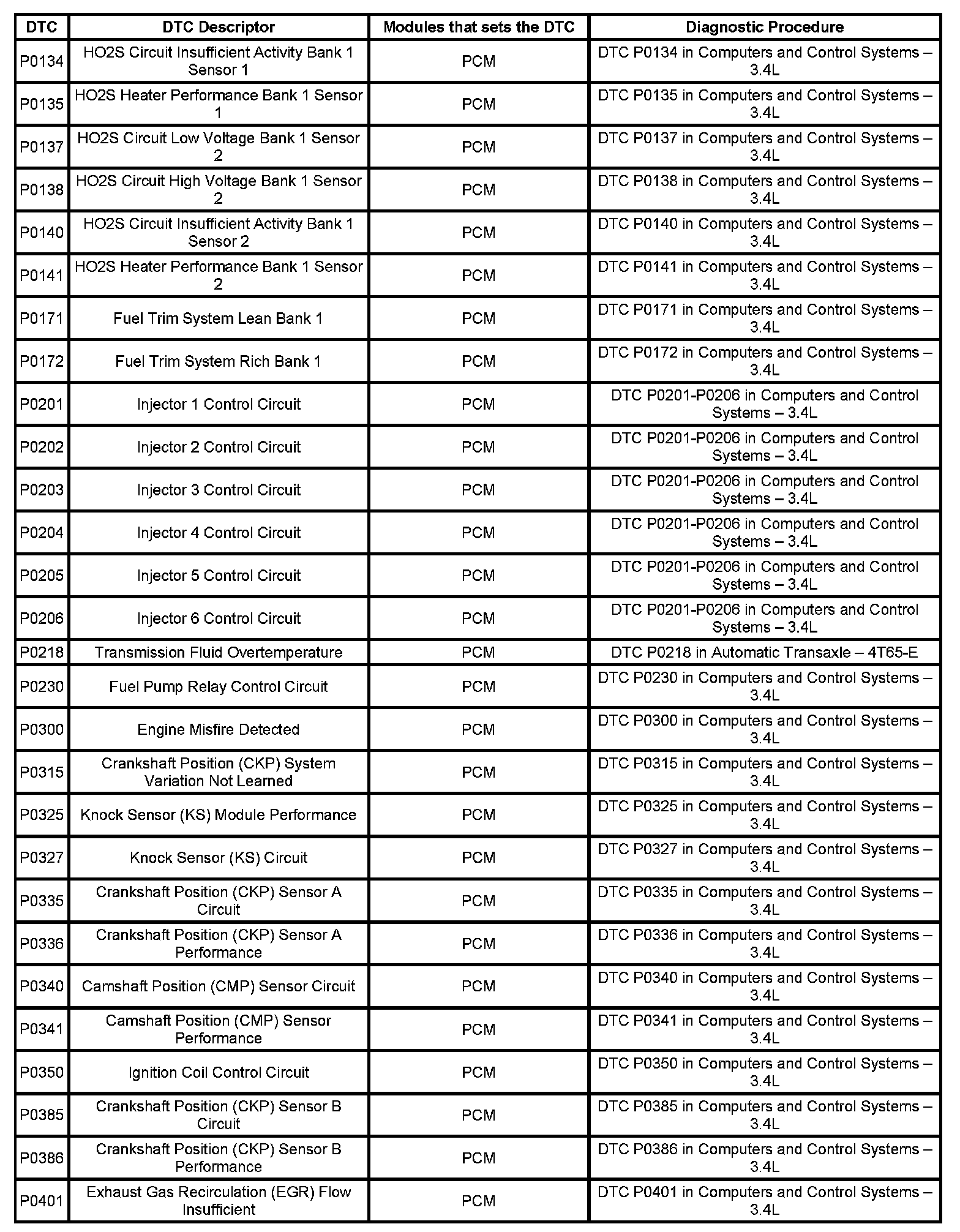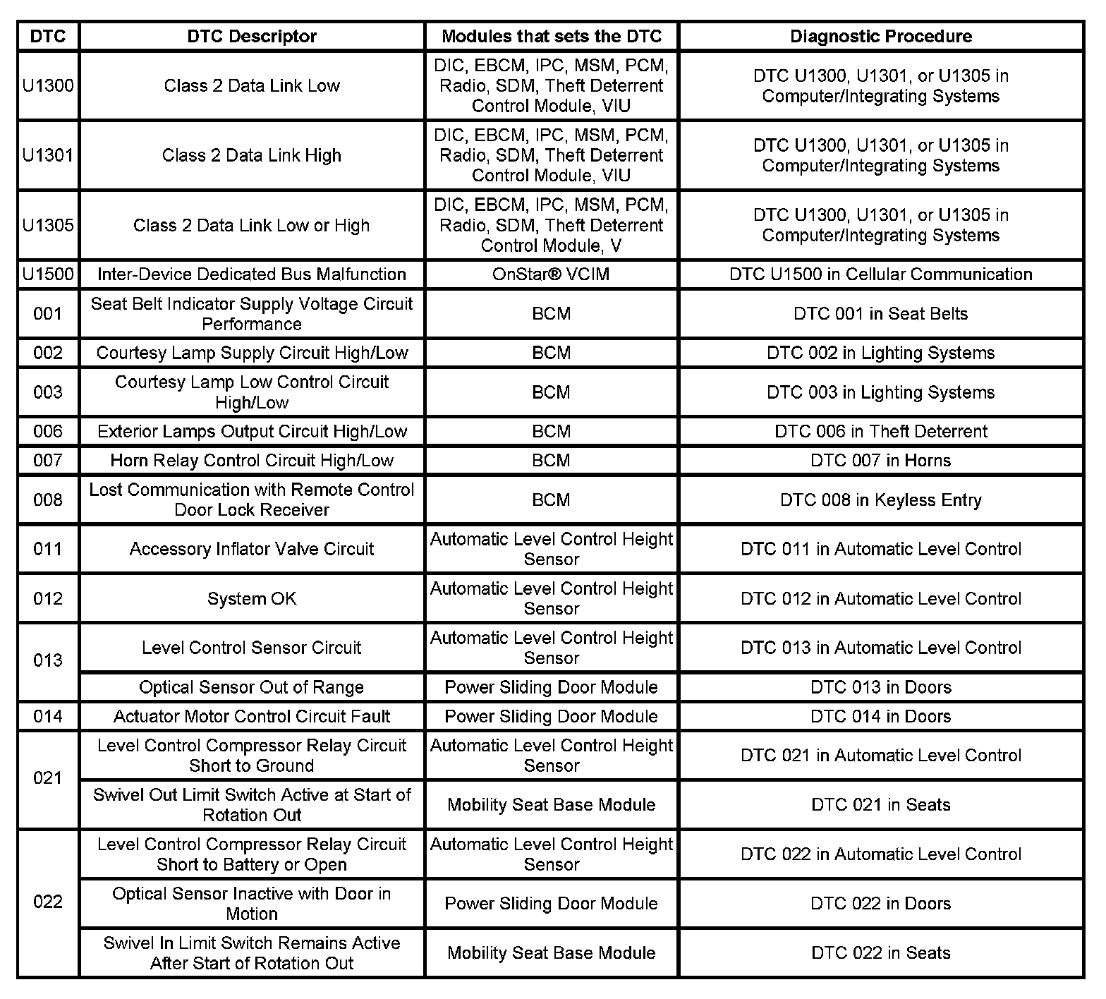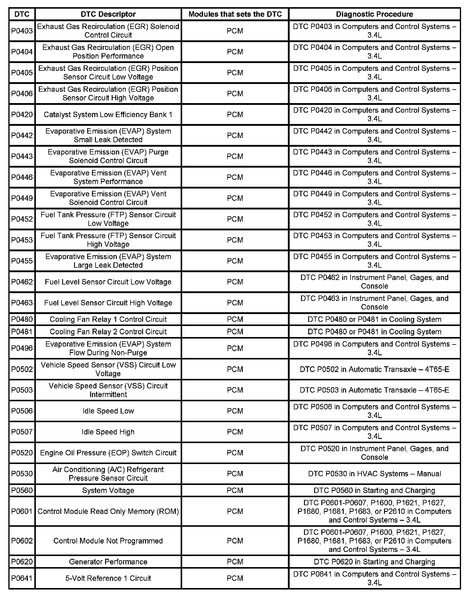 This master DTC list includes all applicable DTCs in alphanumeric order with descriptors.