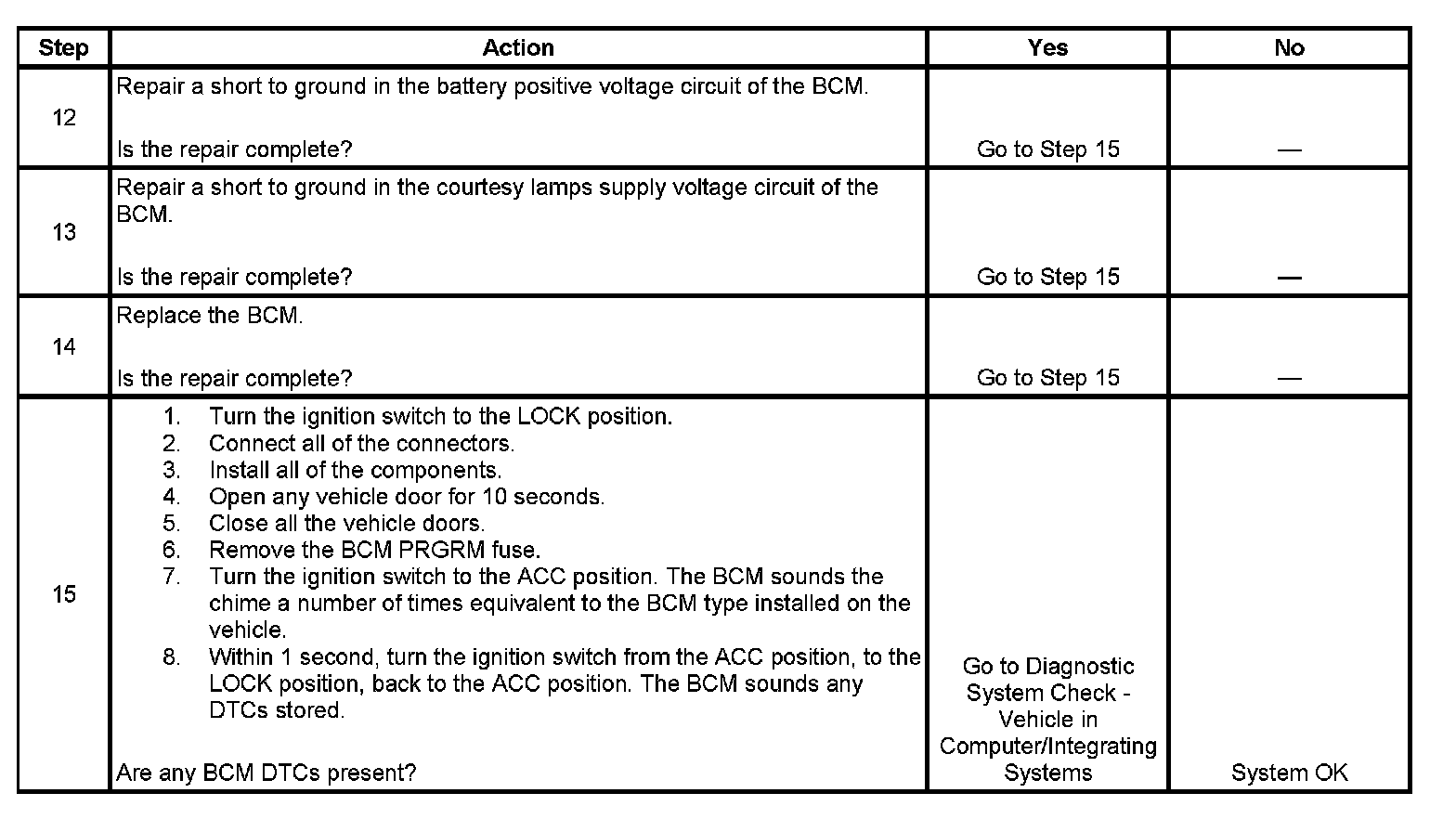 - The BCM sets the diagnostic trouble code (DTC) 2.