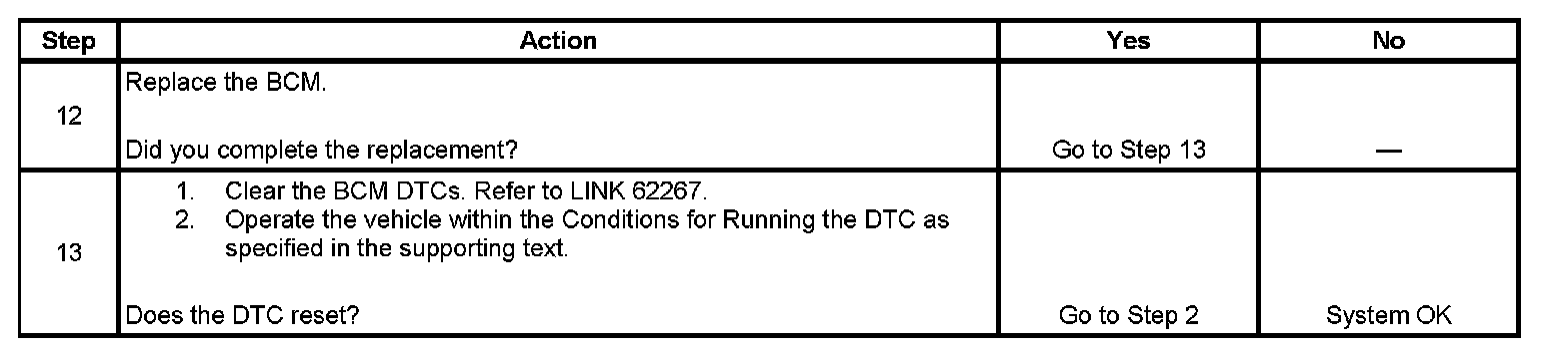 A DTC will clear when the fault is no longer present and the DTCs are cleared as described in Body Control System. Refer to NEED LINK 62267.