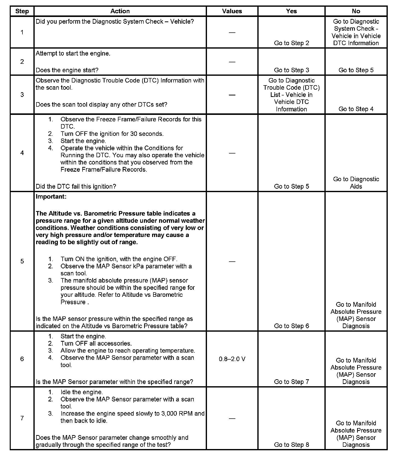 5. This step will determine if the MAP sensor pressure is within the proper range for a given altitude.