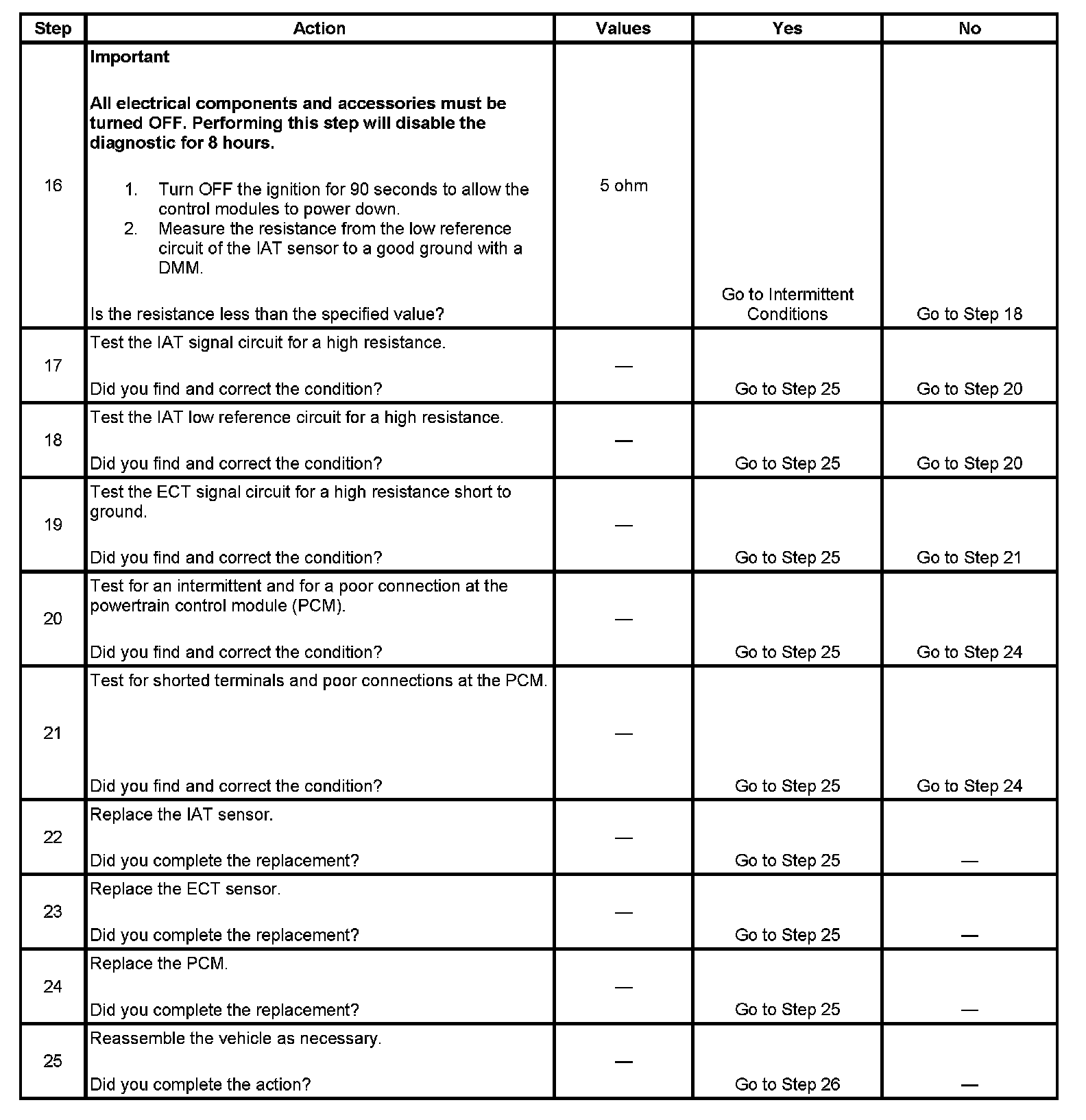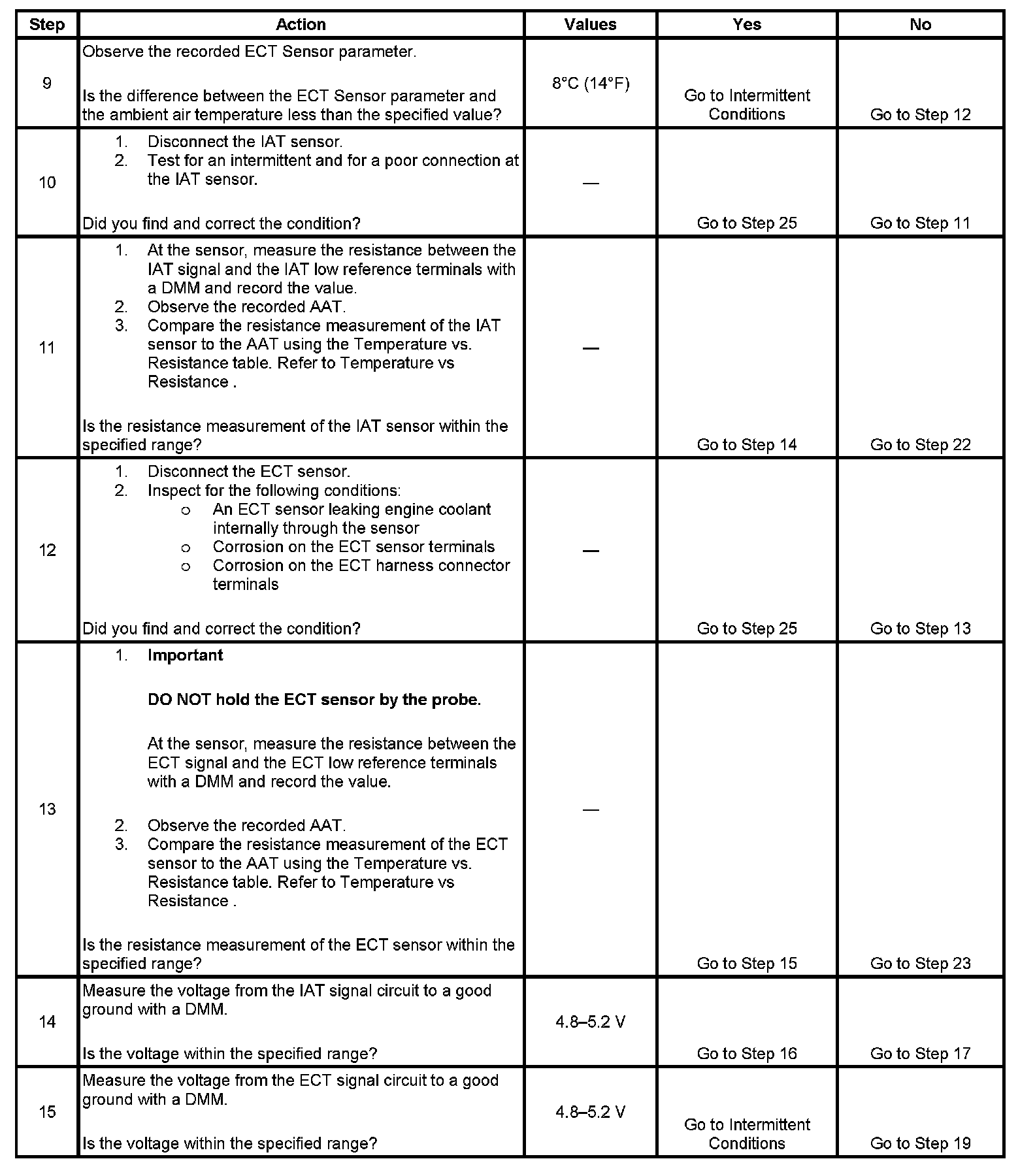 - The time spent cranking the engine, without starting is more than 5 seconds with a temperature difference between the ECT sensor and the IAT sensor more than 15°C (27°F).OR
