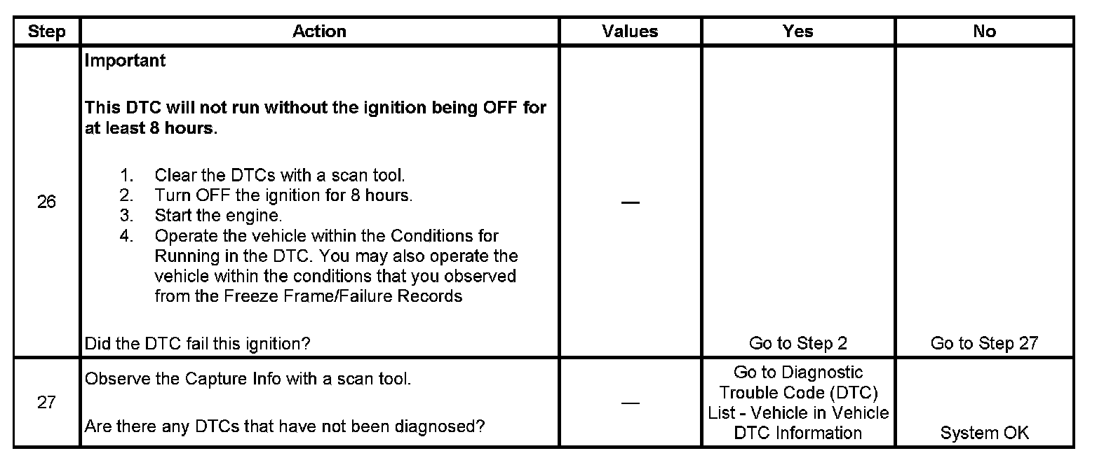 - A current DTC, Last Test Failed, clears when the diagnostic runs and passes.