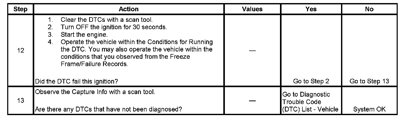 - A current DTC, Last Test Failed, clears when the diagnostic runs and passes.
