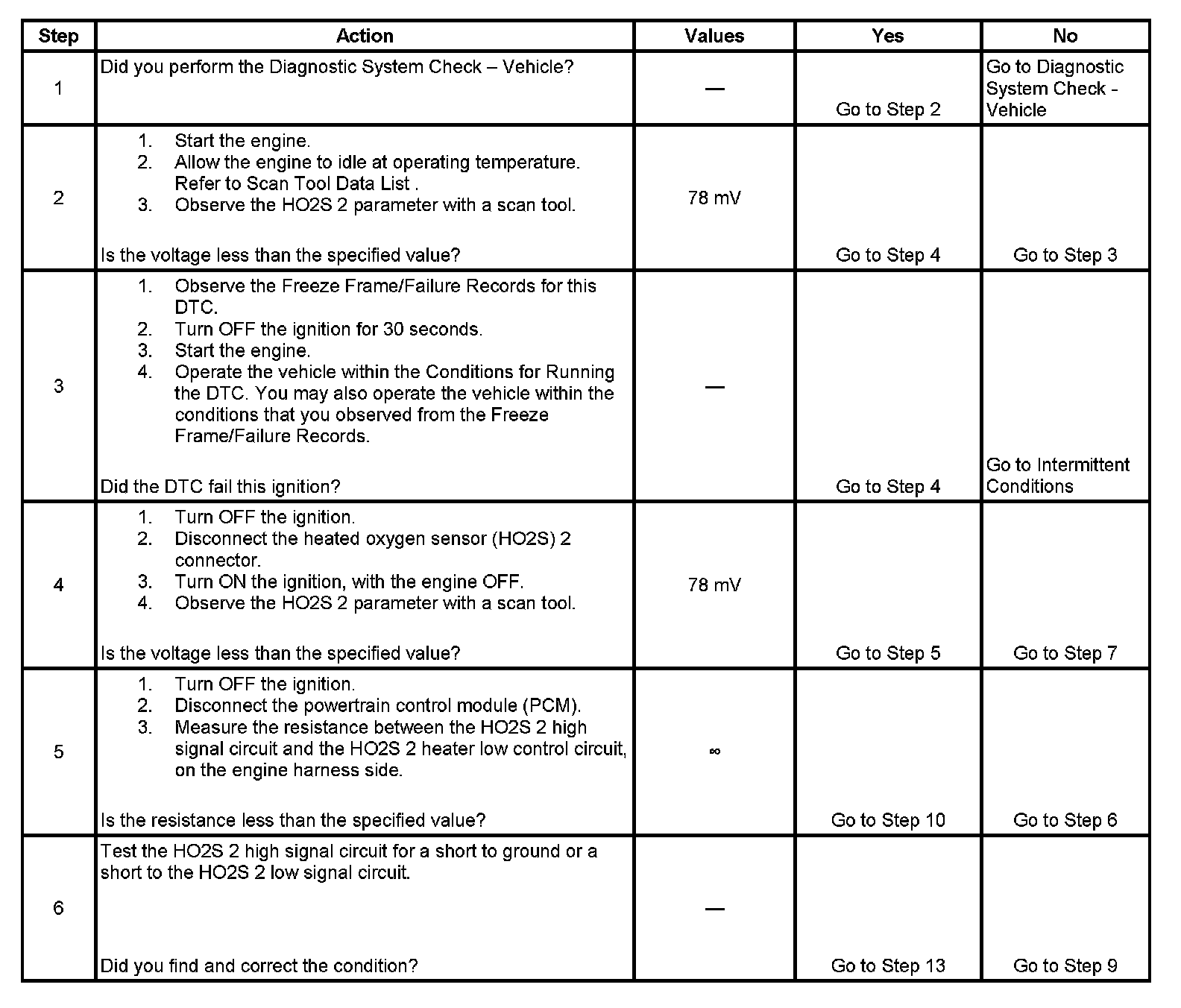 - The PCM detects that the HO2S 2 signal voltage remains below 78 mV for more than 2 minutes.